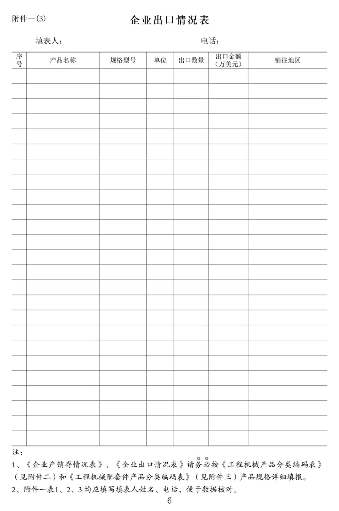 三、对于产品跨工程机械行业外的企业,其经济效益指标表中应将工程机械行业数据单列,产销存及出口表只填写工程机械产品数据;对于跨工程机械行业多个子行业的企业集团,应将包括各子行业的集团经济指标报表、产品产销存表及出口情况表报送到中国工程机械工业协会统计与经济运行部(详细地址见下页脚注)。