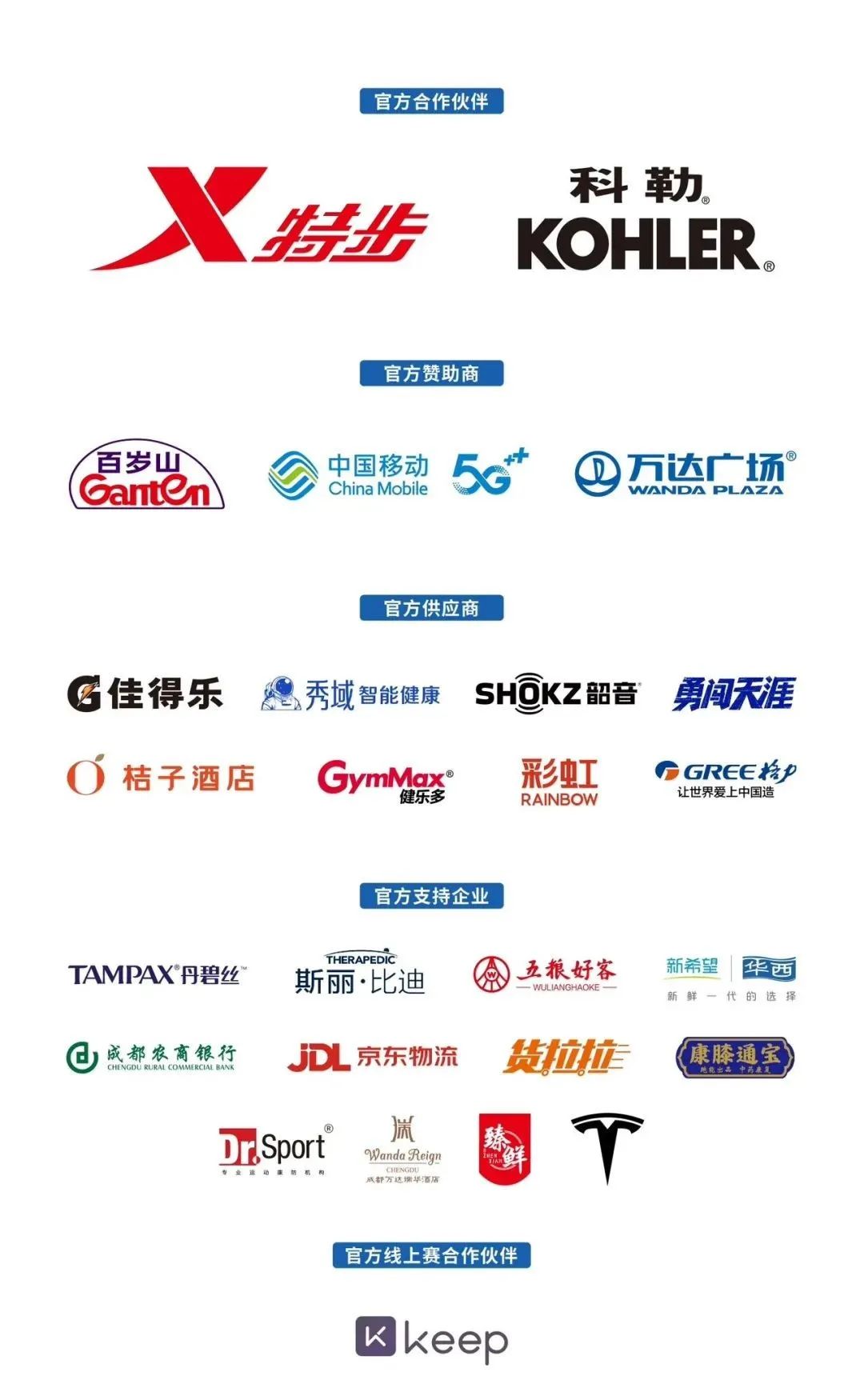 涵盖赛事赞助伙伴、跑步装备、智能体育