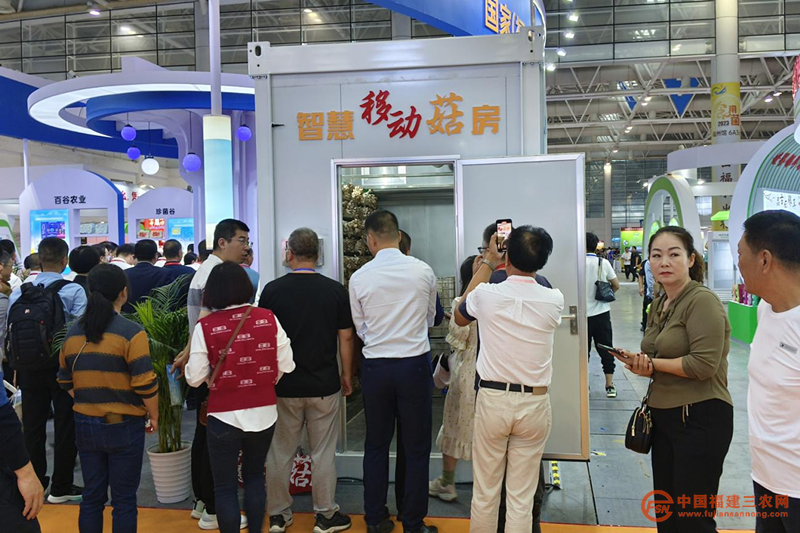 智慧移动菇房吸引众多参观者咨询(程文 摄)
