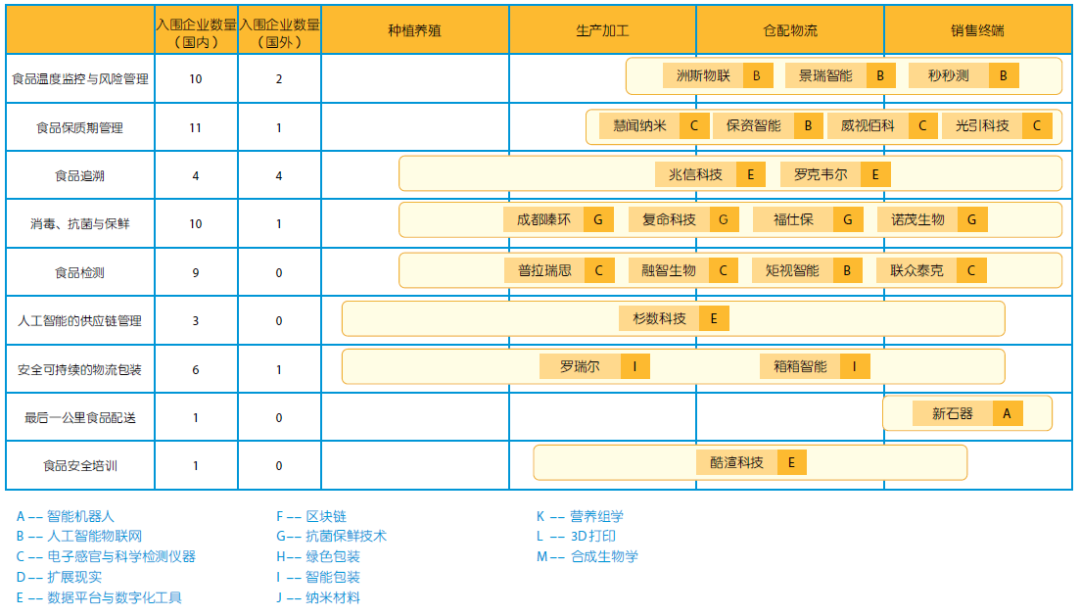 基于五年来通过创新平台积累的创新实践经验,白皮书总结了近年来食品企业重点关注的9大创新场景。在场景选择方面,立足食品行业供应链,以场景创新和业务赋能为导向;在场景分析方面,紧扣业务痛点,对潜在可行的技术路径充分对比;在场景落地方面,筛选和梳理了22家典型企业进行重点介绍。面对食品价值链从农场到餐桌四大核心环节中产生的食品安全合规与风险管理上的挑战,这些创新企业从通信、传感、新材料、人工智能等技术路径切入并进行创新,提供了行之有效的解决方案。