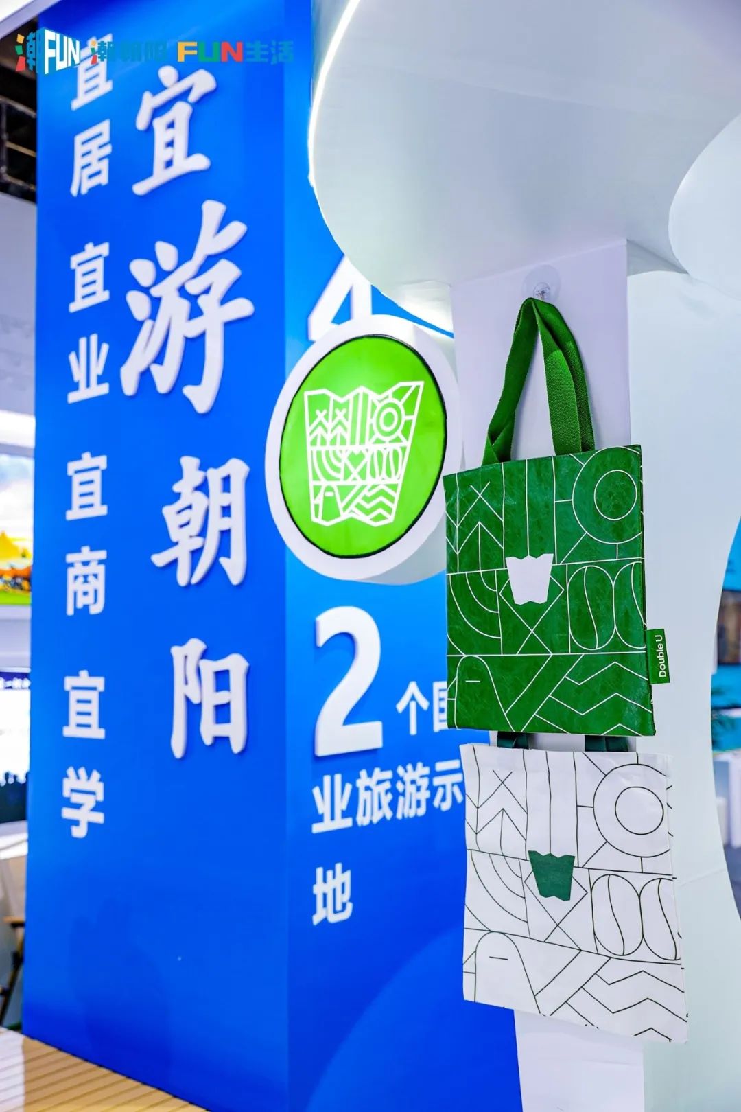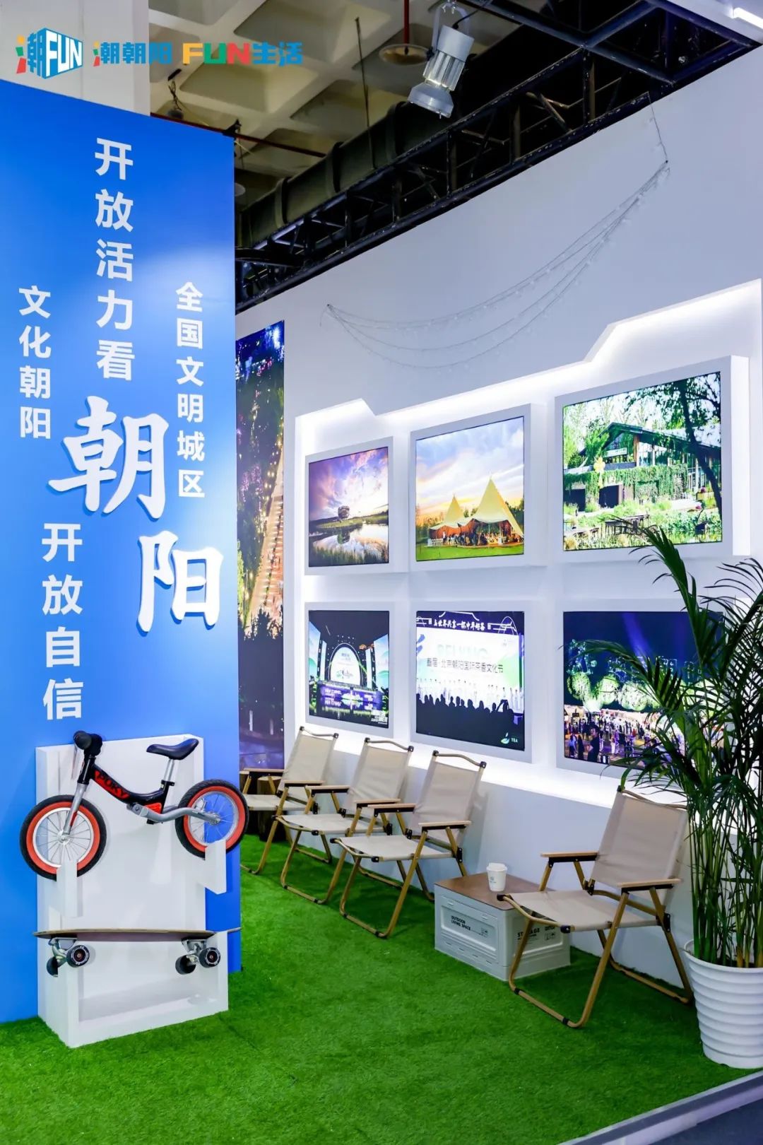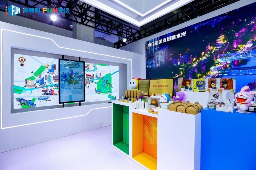 北京消博会在中国国际展览中心(朝阳馆)举办,远远望去,朝阳文旅集团展台上方“潮朝阳 FUN生活”的彩色标语格外引人注目。
