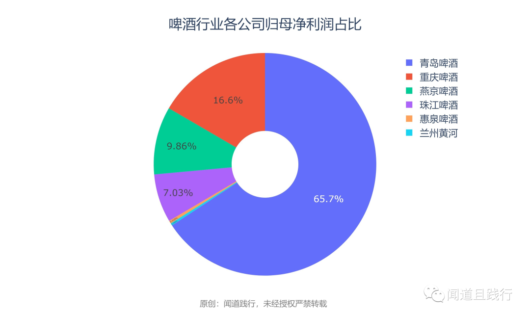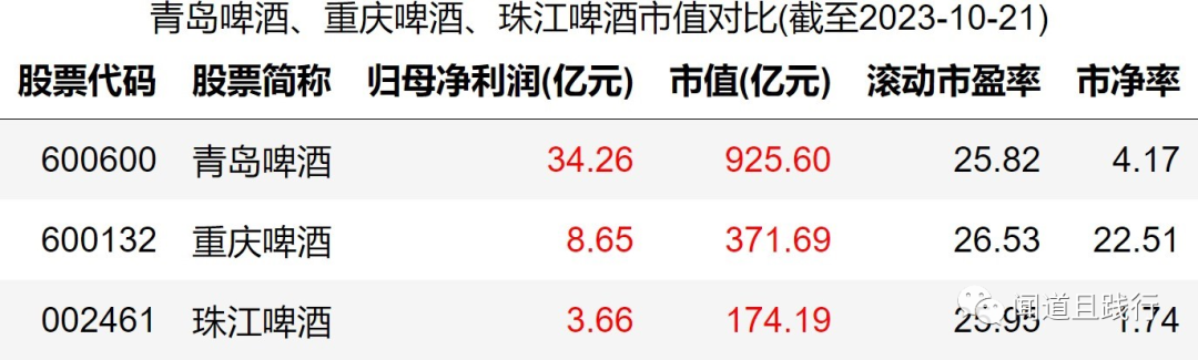 归母净利润,重庆啤酒最高,其次是重庆啤酒,珠江啤酒第三。