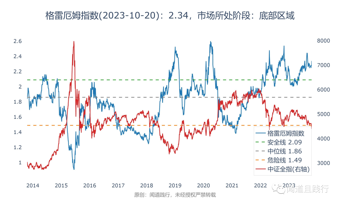目前格雷厄姆指数为2.34,处于底部区域: