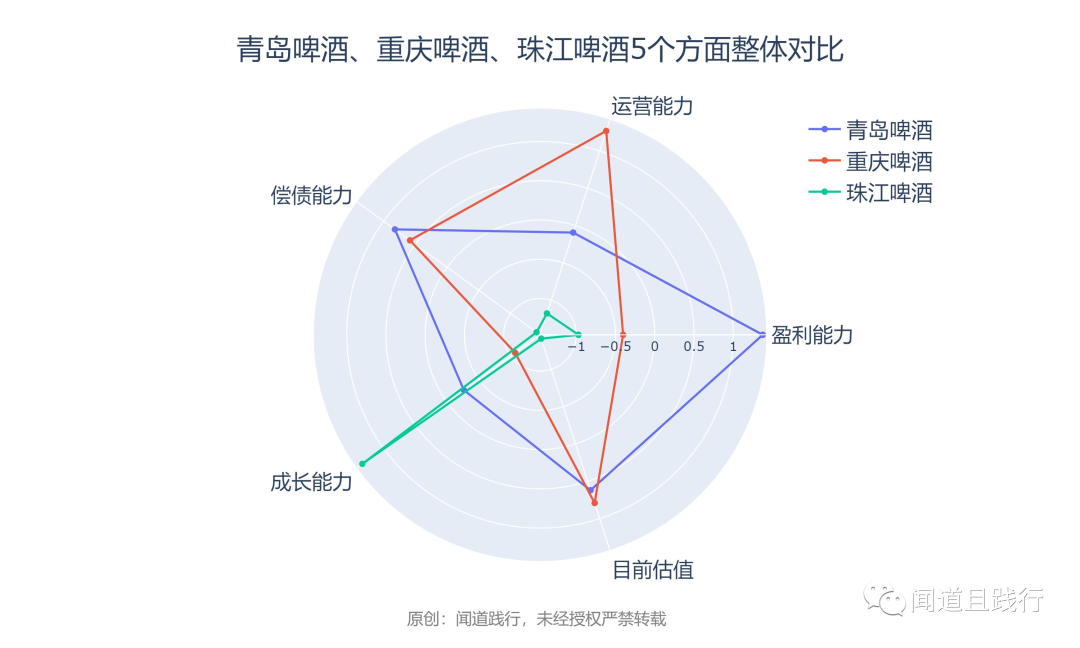 4)成长能力,整体而言,珠江啤酒>青岛啤酒>重庆啤酒
