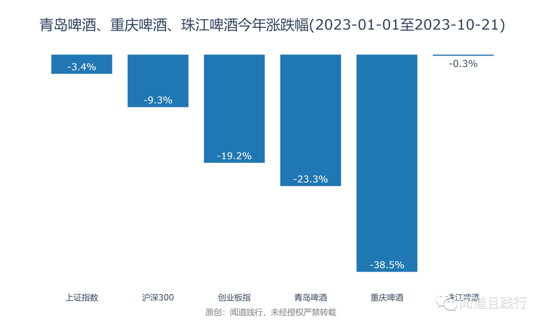 今年以来,这三家公司的基本处于下跌之势,重庆啤酒跌幅高达38.5%: