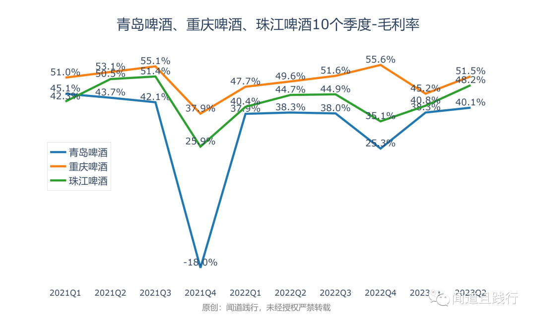 毛利率,重庆啤酒最高,其次是珠江啤酒,重庆啤酒第三。