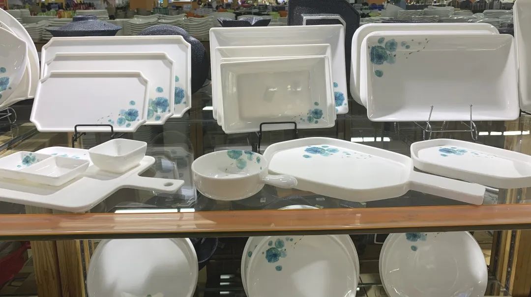 第三,看产品外观。通常质感越接近陶瓷越好,优质的密胺餐具表面光滑、光泽度好、毛孔细密、图案鲜艳亮丽,为了保证经久耐用、抗冲击,一般在3mm的厚度。