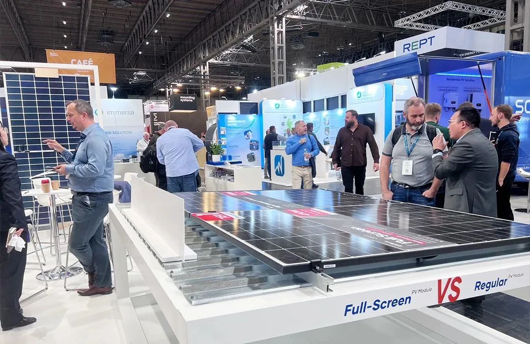 此次英国展亮相的全面屏组件2.0系列(TOPCon全面屏系列组件)产品,是将全面屏专利技术与大恒能源自研自产的TOPCon电池完美结合,功率与转换效率更高、衰减率更低,性能显著升级,全面屏组件免清洗、多发电,在分布式光伏电站的应用上极具优势。