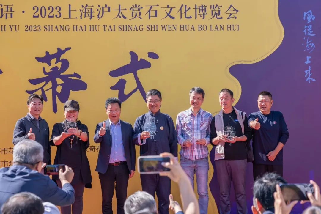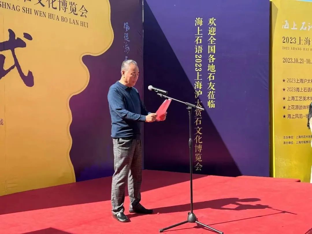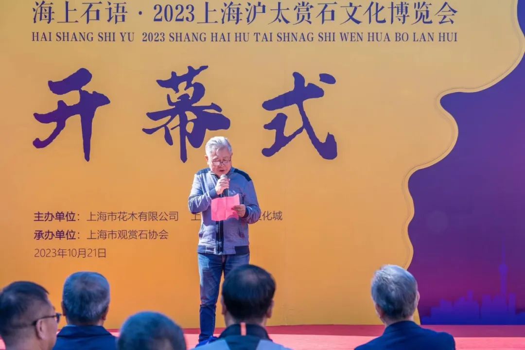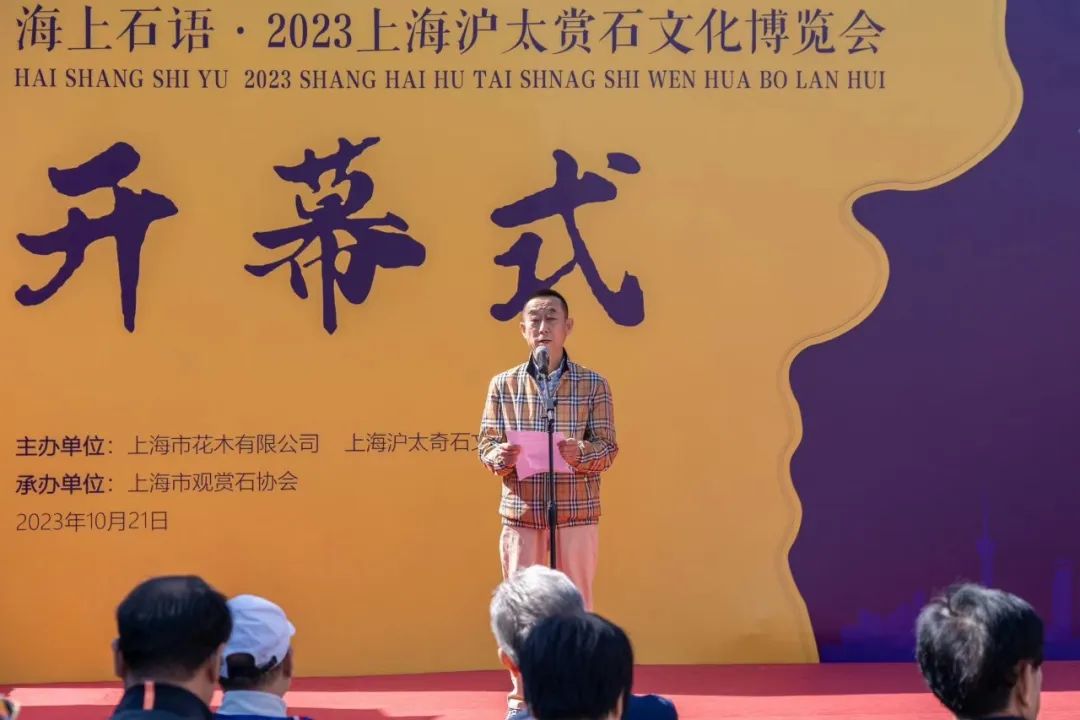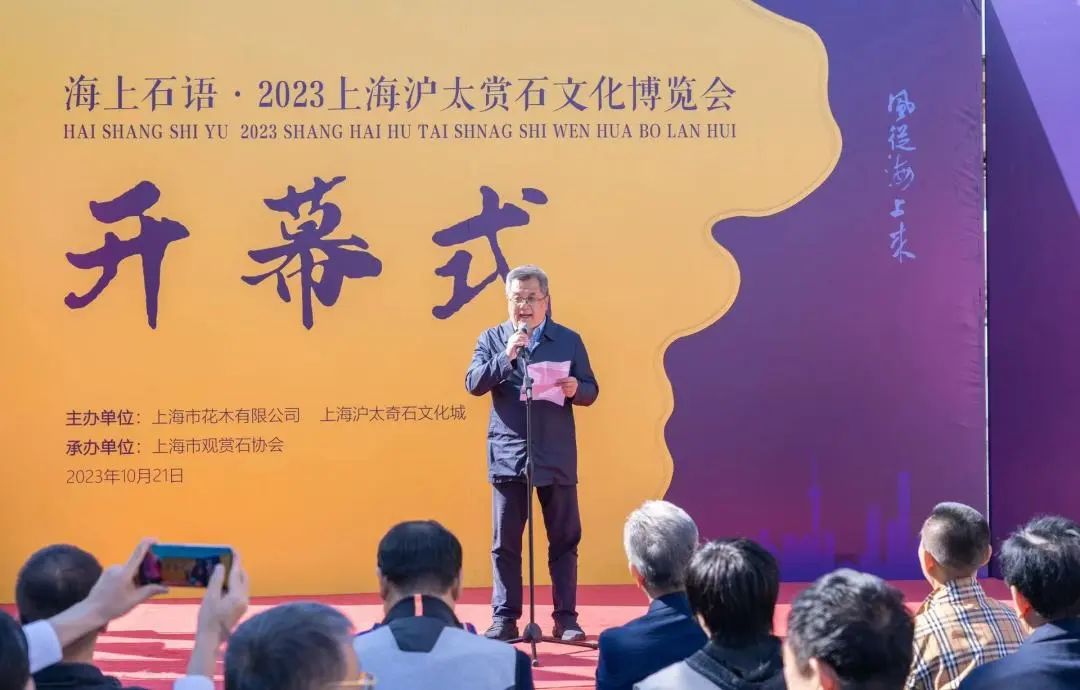 10月21日上午,“风从海上来 海上石语 2023上海沪太赏石文化博览会”(以下称“沪太石博会”)在上海沪太奇石文化城隆重揭幕。中国观赏石协会副会长、北京观赏石协会会长何宝宽、中国观赏石协会副会长、青海省观赏石协会会长毕崇毅、中国观赏石协会高级顾问陈正明、原光明集团总裁、上海市收藏家协会顾问曹树明、上海市观赏石协会会长杜海鸥、上海朵云轩集团公司党委书记顾林凡、上海工艺美术学会会长、工艺美术杂志主编周南、上海工艺美术博物馆馆长陳毓禮、上海吴昌硕纪念馆执行馆长夏鸿生等数十位上海和来自全国各地赏石收藏届、艺术界资深人士汇聚一堂,共襄沪太赏石盛会;上海市绿化管理指导站站长奉树成、普陀区绿化市容局副局长沈瑞毅、普陀区甘泉街道党工委副书记俞颖等领导和嘉宾应邀出席开幕仪式;本届沪太石博会组委会主任、上海市花木有限公司董事长刘雨,上海市花木有限公司党委副书记、上海沪太奇石文化城董事长王远路,上海沪太奇石文化城总经理陈新华等出席开幕活动。