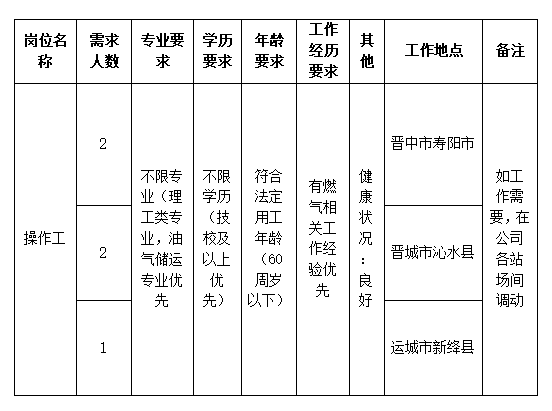 根据用工单位需求,山西浦东红杰人力资源有限公司受山西国化燃气有限责任公司委托,公开招聘工作人员5名,现将招聘内容公告如下: