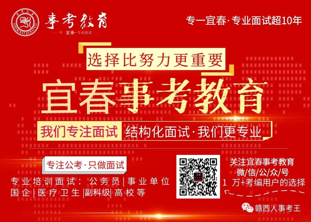 更多宜春本地公考资讯,关注赣西人事考王公众号