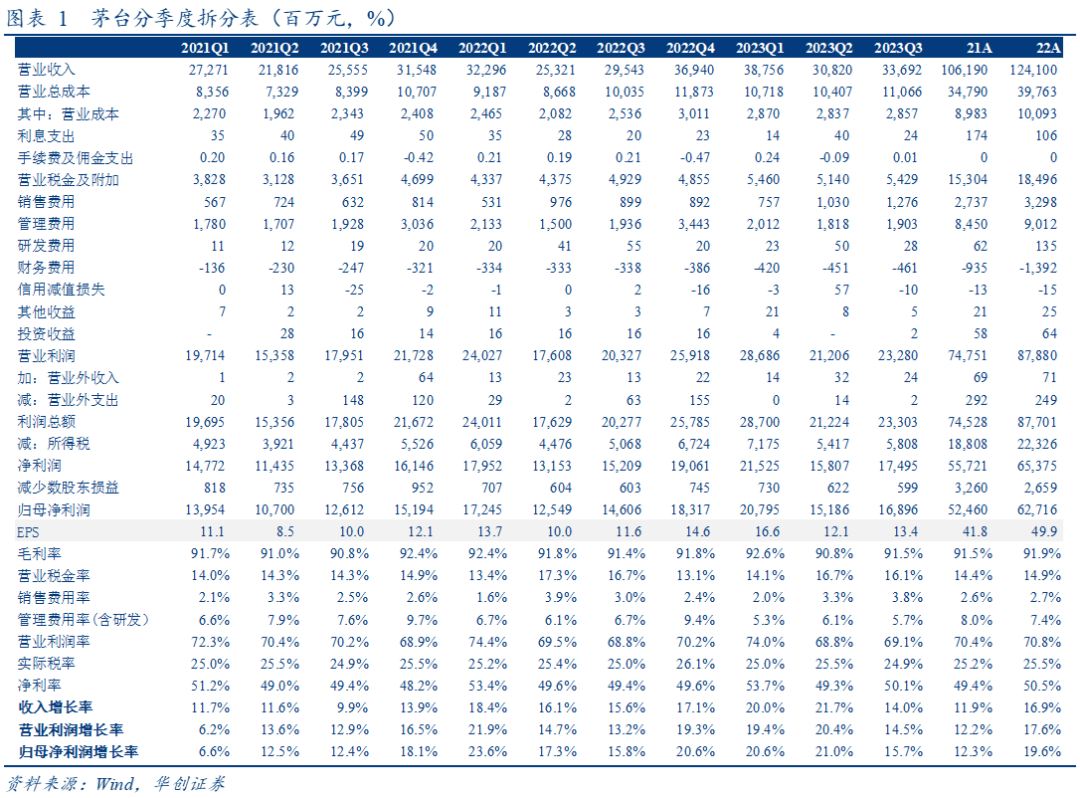 具体内容详见华创证券研究所10月22日发布的报告《贵州茅台(600519)2023年三季报点评:报表坚挺,底牌仍足》
