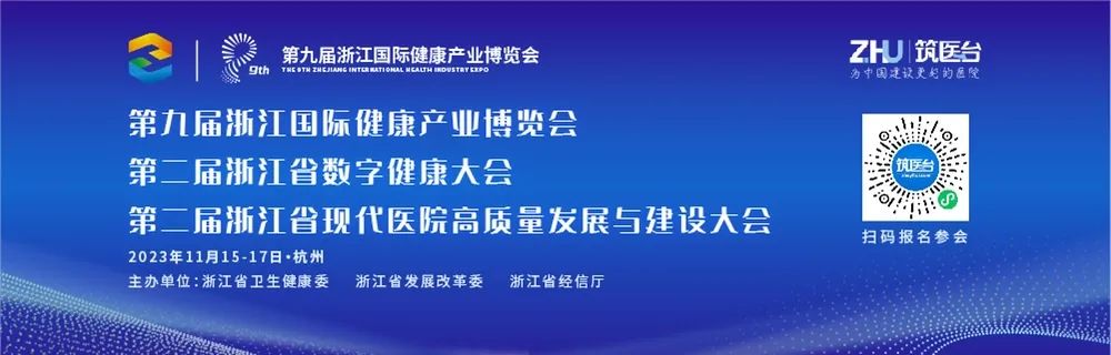 2023年11月15-17日,由浙江省卫生健康委、浙江省发展改革委、浙江省经信厅主办,浙江省健康服务业促进会承办,筑医台、浙江省卫生信息学会联合承办的第九届浙江国际健康产业博览会将在杭州国际博览中心召开。本届健博会以“智立潮头·拥抱未来”为主题,汇集行业智慧与创新力量,共同探索构建面向未来的医院建设知识体系,通过“会议、展览、体验、对接”等组织方式,携手打造一个创新型、国际化、引领性的行业交流合作平台与国内医院建设“高精尖特”成果展示窗口,为推动现代医院高质量发展与建设做出积极贡献。