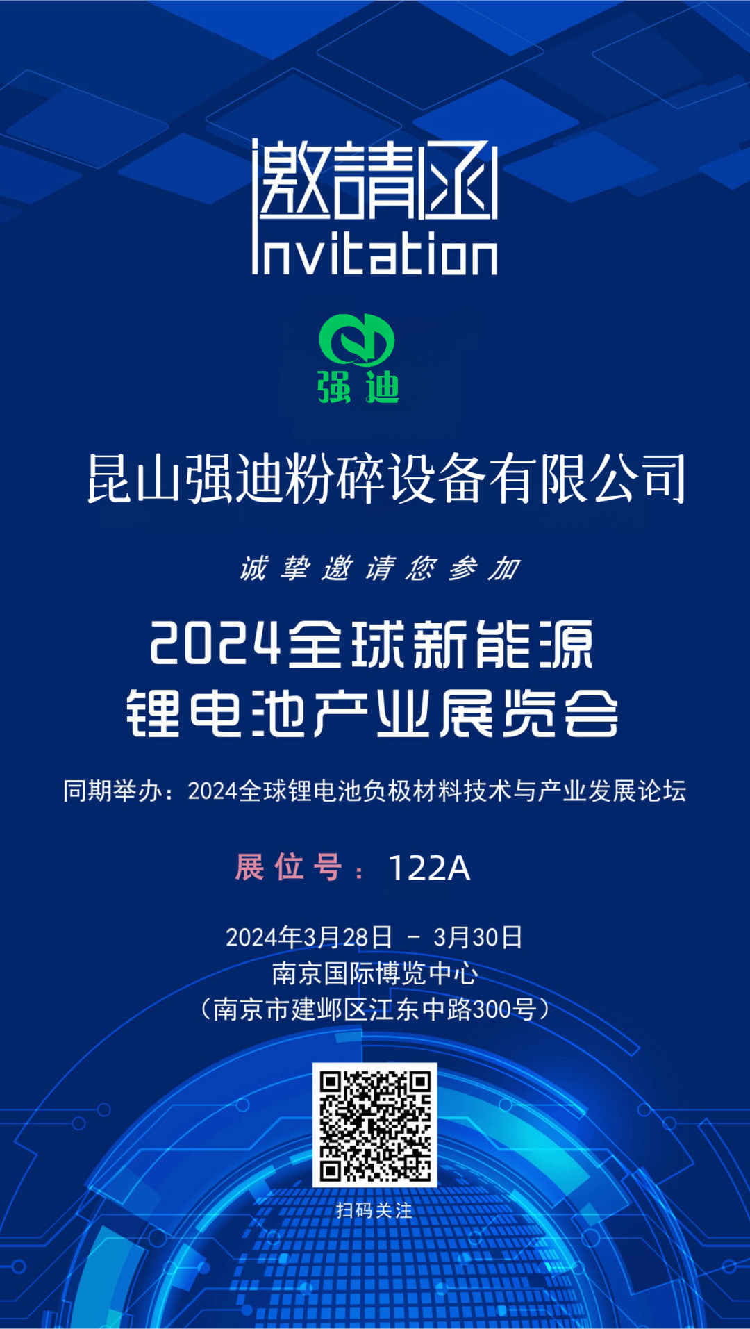 CLBE2024全球新能源锂电池产业展览会即将开幕啦!昆山强迪与您相约,我们南京国际博览中心不见不散,