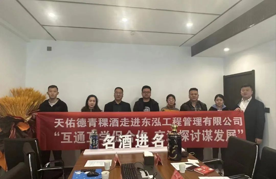 在会议室交流阶段,东泓工程管理有限公司对天佑德青稞酒公司一行领导的到来表示欢迎,袁铭总经理表示公司将以新的姿态努力实现"一个扩大、二个提升、三大突破"的目标,坚定不移的继续扩大经营规模,提升安全传统管理能力,提升资产回报率,实现人才、管理的突破,不断实现自我跨越,向着更加辉煌的目标迈进。天佑德青稞酒公司向与会领导展示了天佑德品牌宣传片和天佑德公司党建宣传片,张亦军经理向大家讲解了公司发展历程和社会责任践行情况。许锦文书记向东泓工程管理有限公司参会领导介绍了天佑德青稞酒的四美战略、清蒸清烧四次清生产工艺和青稞的生产基地分布和谣言(酒厂不冒烟、闻不见酒香等),并邀请东泓工程管理有限公司领导到天佑德青稞酒公司开展交流活动,指导工作。在交流过程中仔细听、认真看,切身感受到袁总对于公司未来发展的一个重要布局,同时也能感受到袁总对于公司未来发展的信心,相信在袁总的带领下公司一定会不断壮大日进斗金,让天佑德一行收获满满、无不称赞。