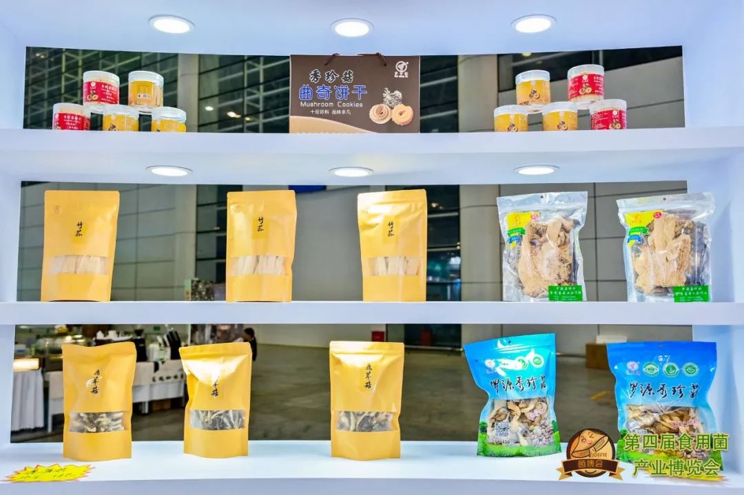 展会现场香菇、双孢蘑菇、毛木耳、银耳、茶树菇、海鲜菇、竹荪、姬松茸、秀珍菇、猴头菇、鲍鱼菇、绣球菌等食用菌干、鲜品以及灵芝胶囊、孢子粉、银耳羹、香菇酱等食用菌精深加工食品等食用菌产品琳琅满目。除这些常见的食用菌外,还可见到大球盖菇、长根菇、白灵菇等珍稀食用菌以及干巴菌、羊肚菌、松茸、松露、红菇、鸡枞菌、黑虎掌菌、牛肝菌、鸡油菌、奶浆菌等野生菌。