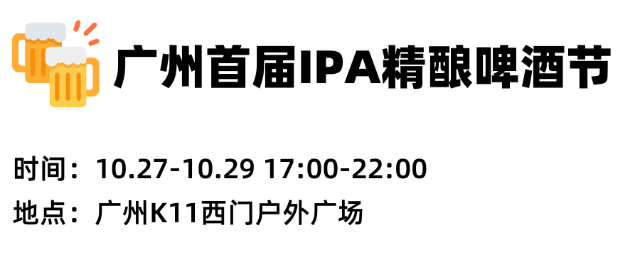 如果在厂里喝不够,我们还将赶上两场精酿啤酒节。包括首次举办的广州IPA啤酒节和第三届华南精酿啤酒节。50+厂牌,跟绊姐喝通关,跟天哥喝明白!