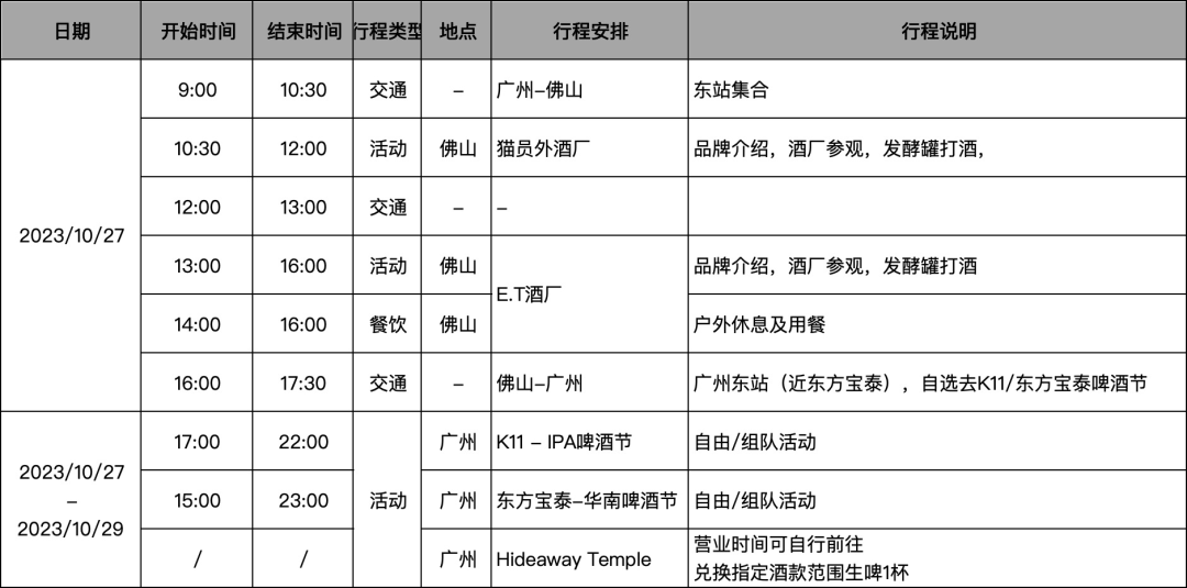 *本场活动主打一个自由、灵活。除了周五酒厂巡游活动,我们将不指定大家打卡两个啤酒节及Hideaway的时间。欢迎顿友们跟Tian哥、绊姐一起去,也可以在活动群里约其他顿友自行前往。