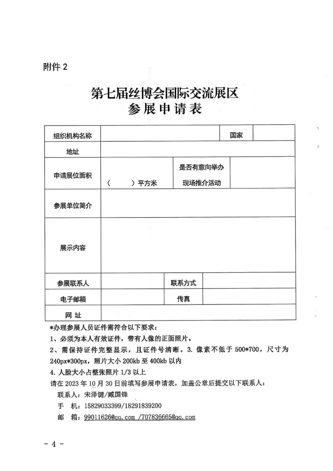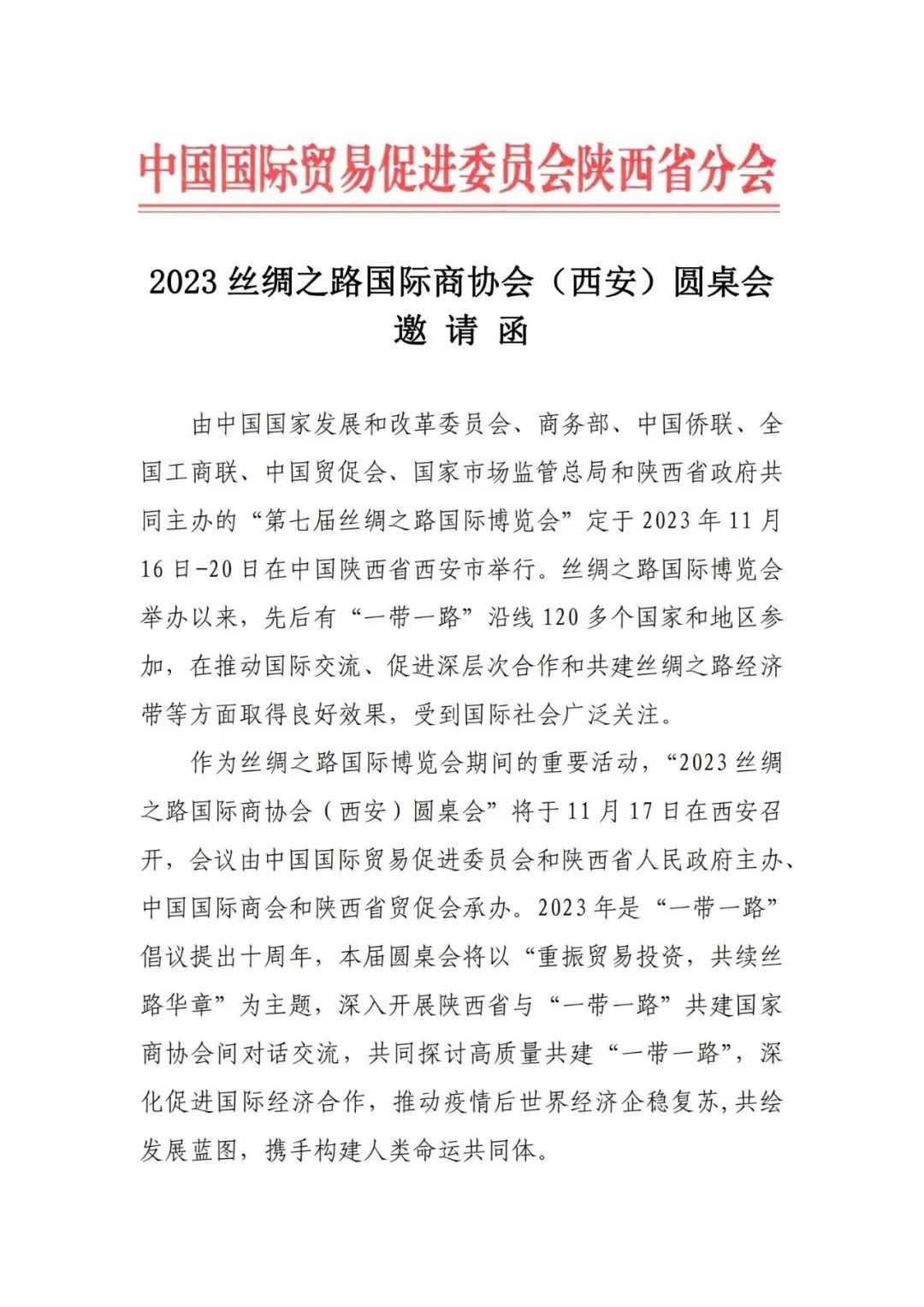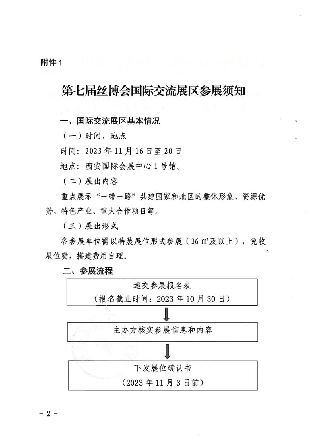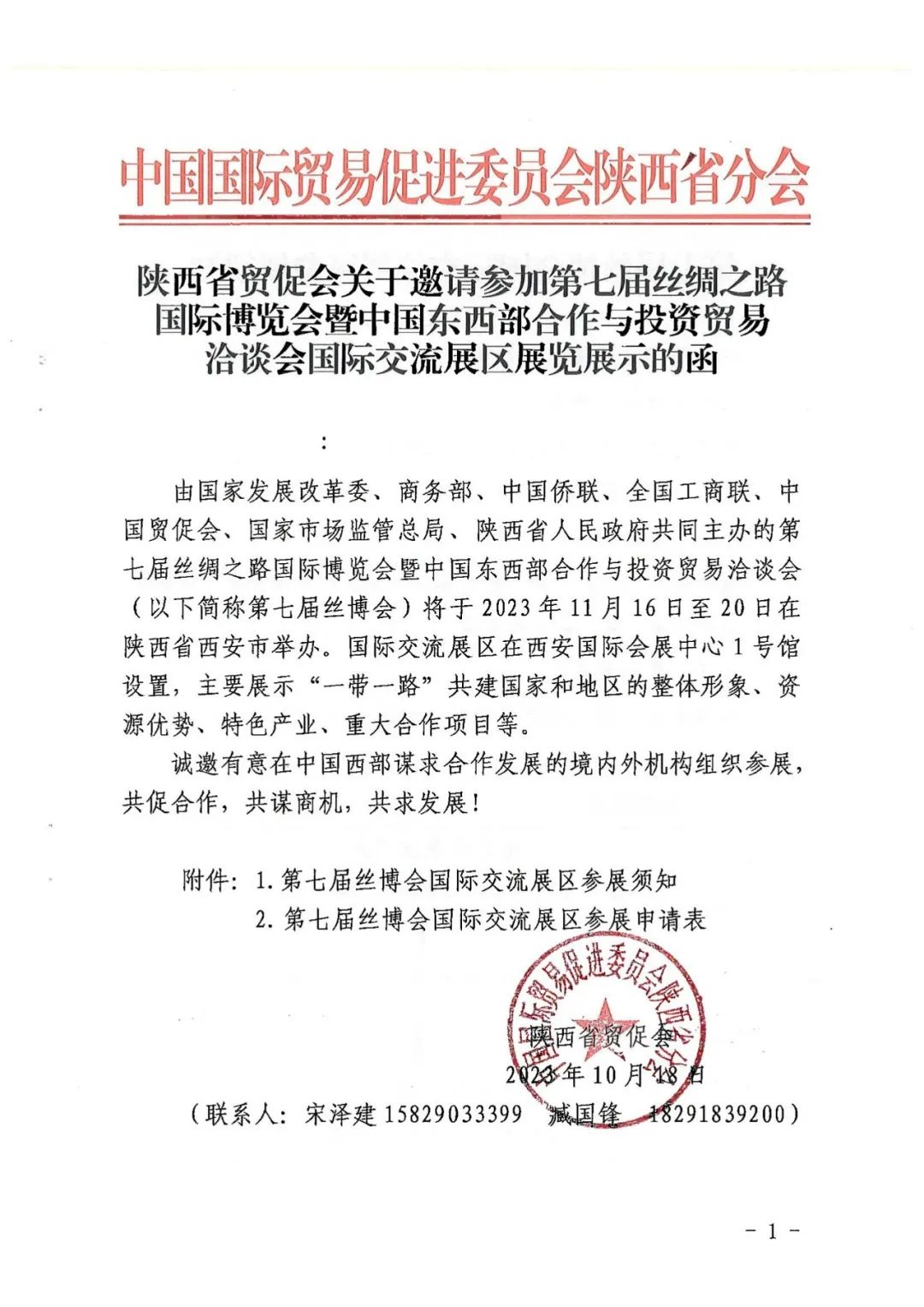 由中国国家发展和改革委员会、商务部、中国侨联、全国工商联、中国贸促会、国家市场监管总局和陕西省政府共同主办的“第七届丝绸之路国际博览会暨中国东西部合作与投资贸易洽谈会”定于2023年11月16日-20日在中国陕西省西安市举行。丝绸之路国际博览会举办以来,先后有“一带一路”沿线120多个国家和地区参加,在推动国际交流、促进深层次合作和共建丝绸之路经济带等方面取得良好效果,受到国际社会广泛关注。