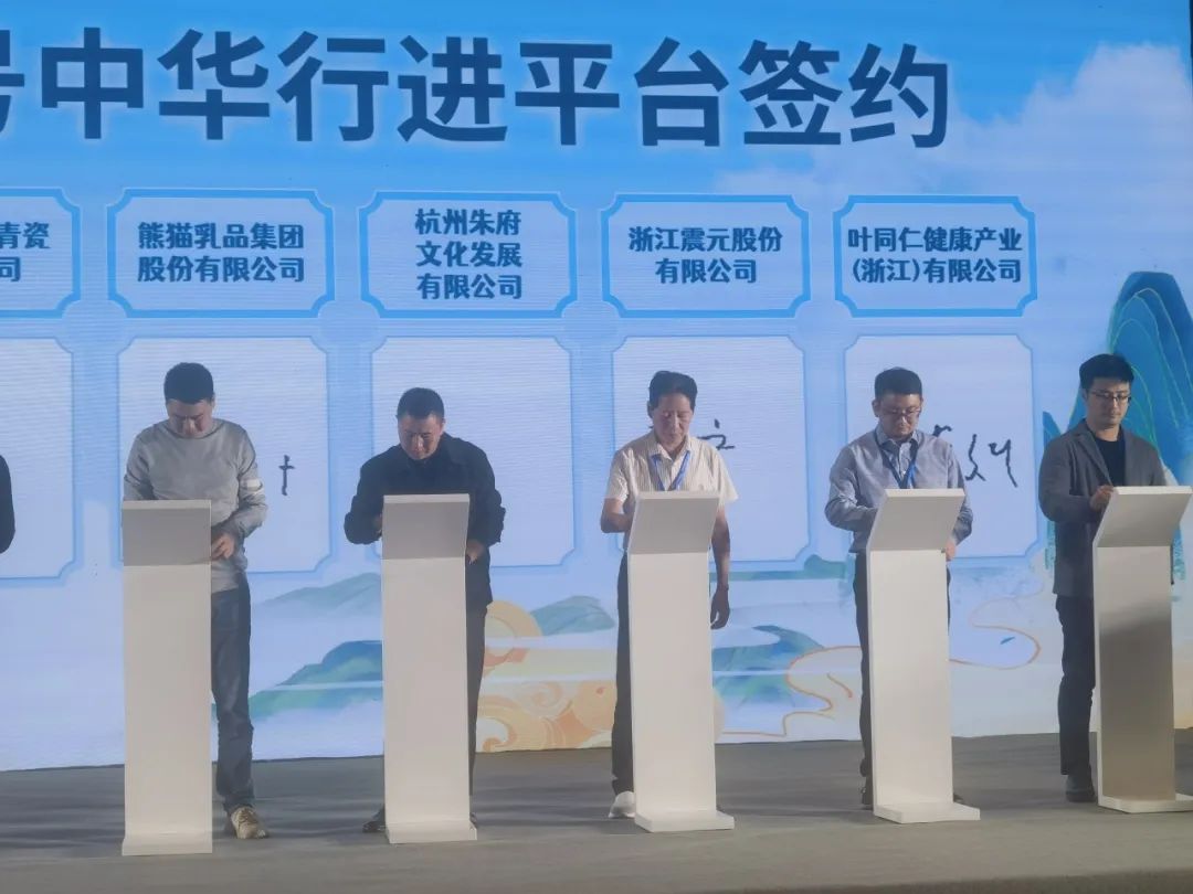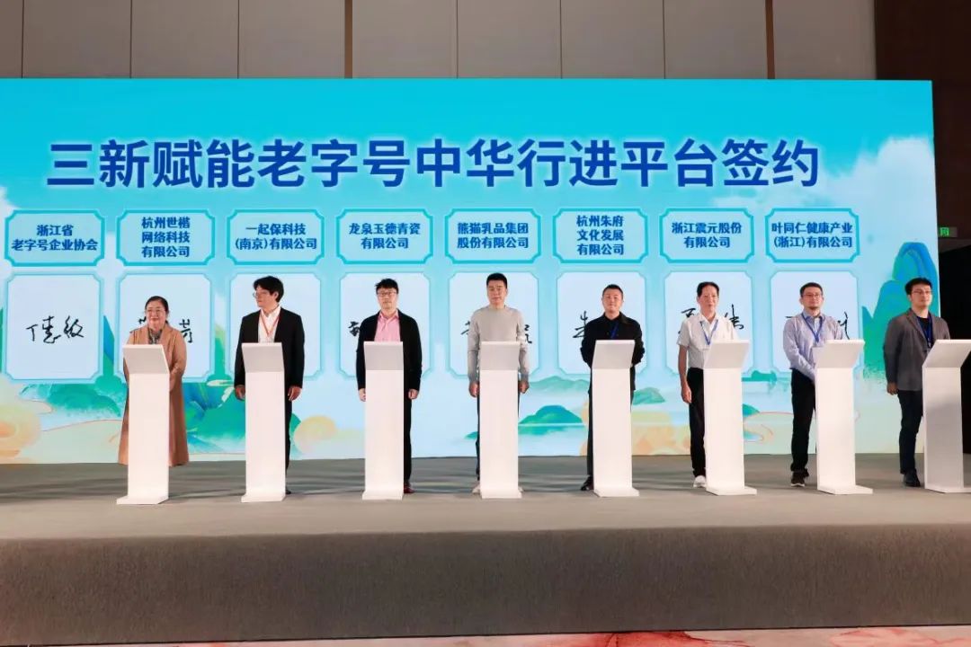 期间,由商务部中国世界贸易组织研究会服务贸易专业委员会牵头指导的“三新赋能”老字号进平台创新项目启动签约仪式成功举办。以龙泉玉徳青瓷有限公司、熊猫乳品集团股份有限公司、杭州朱府文化发展有限公司、浙江震元股份有限公司、叶同仁健康产业(浙江)有限公司为代表的首批50家来自全国各地的老字号企业加入了“三新赋能”老字号进平台的服务签约。