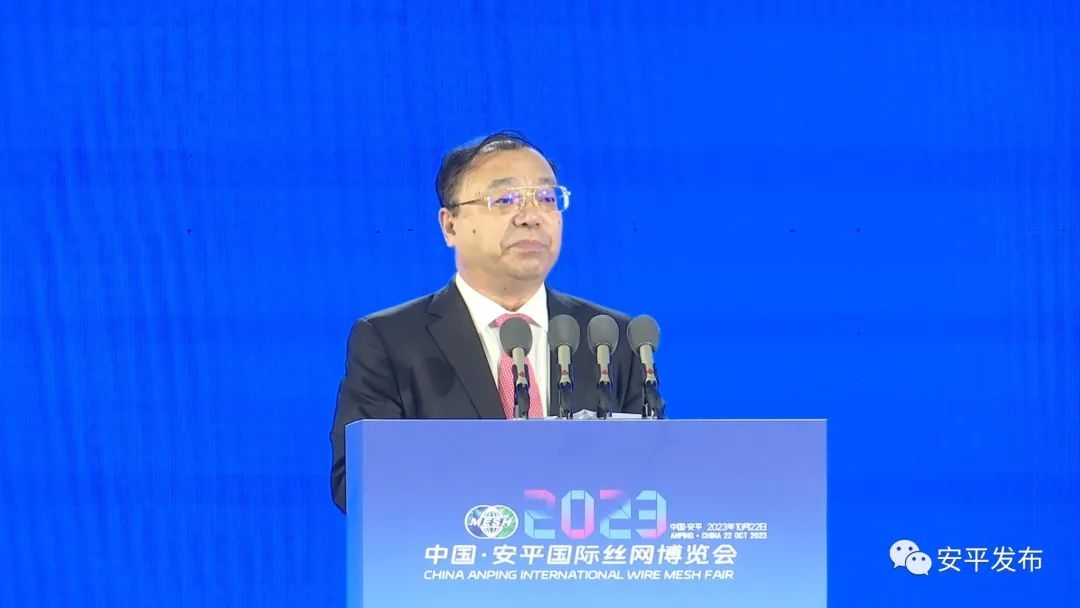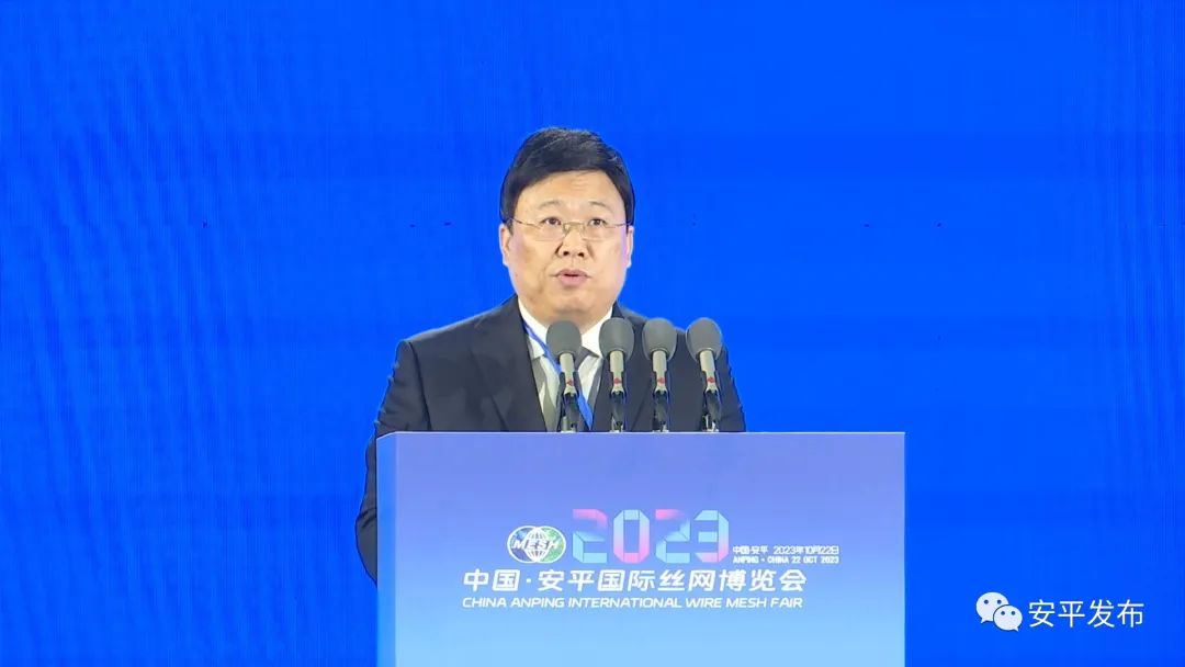 曹向东在致辞中指出,安平因丝而兴、因网而盛,丝网产业从明朝弘治年间的绢罗加工,到如今随飞船上天、伴蛟龙入海,历经500余年传承与创新。安平荣获了中国丝网之都、中国丝网织造名城、国家外贸转型升级示范基地、全国首批“小微企业质量管理体系认证提升行动”区域试点、全国中小企业特色产业集群等系列荣誉称号。丝网产业营业收入逐年提升,今年有望突破1000亿元。希望大家把更多的目光聚焦安平,把更多的资源带到安平,共享新机遇、共谋新发展、共创新未来,我们将提供最优质的服务,营造最舒心的环境,让企业家在安平大显身手、大有可为、大展宏图。
