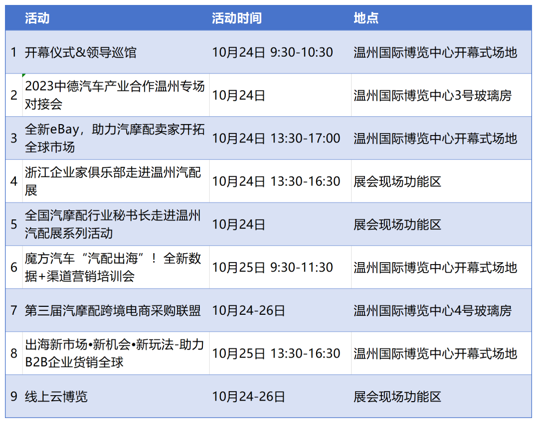 此外,同期还将举办“2023中德汽车产业合作温州专场对接会”“第三届汽摩配跨境电商采购联盟”“汽配出海!全新数据+渠道营销培训会”等9场配套活动。线上直播和线下办展同步结合,观众不仅可以现场参展,还可以通过手机、电脑参与“云逛展”,突破时空限制,实现买卖双方实时互动,为产业发展和品牌培育添势赋能。