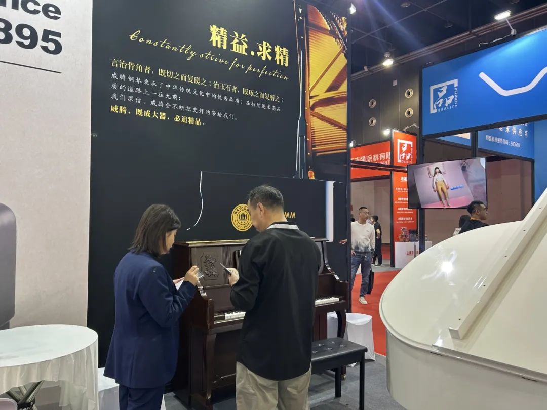 威腾钢琴展位(D1-D034)吸引了众多国内外音乐爱好者的眼球,前来咨询、体验的观众络绎不绝!大批的音乐专业人士、乐器迷前来体验试弹,现场琴音连绵不断。现场工作人员热情接待,耐心解答,力求展示最精彩的威腾钢琴。