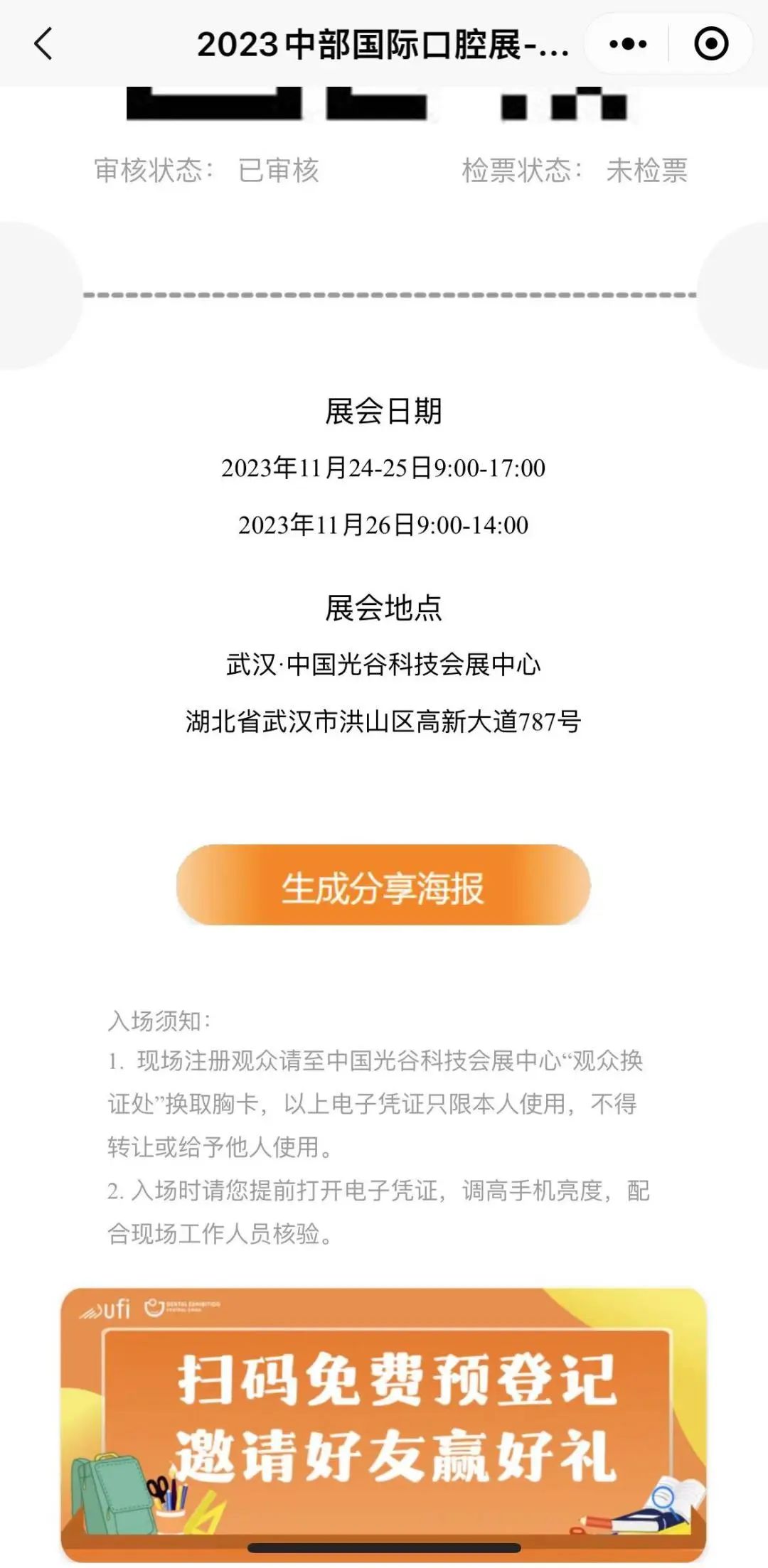 免费预登记报名:微信授权一键登录,首页进入观众免费预登记专区,生成个人专属入场凭证,持码入场,免去现场排队等待环节。
