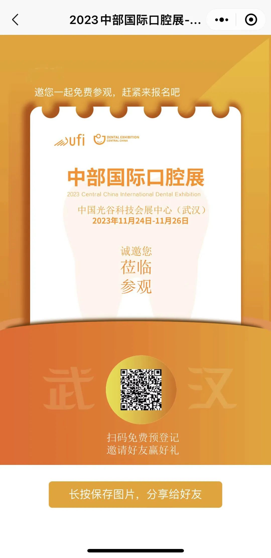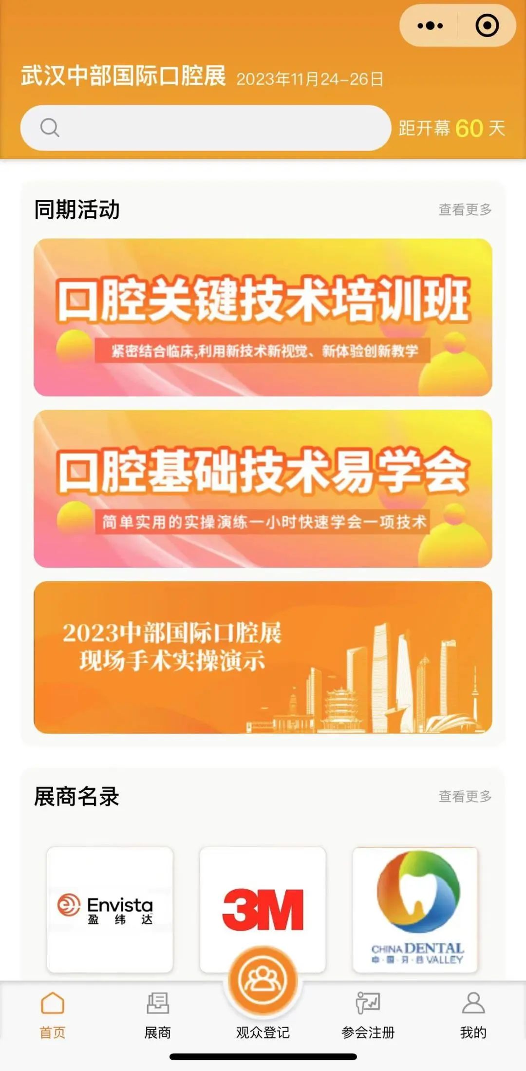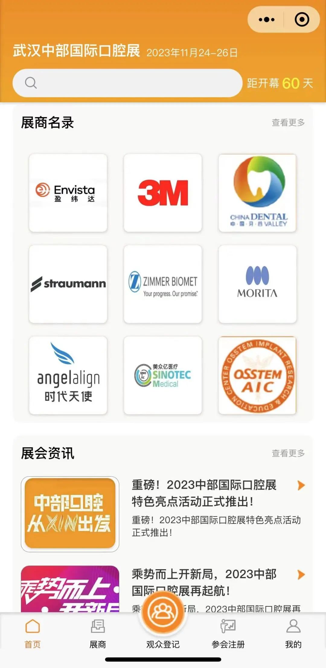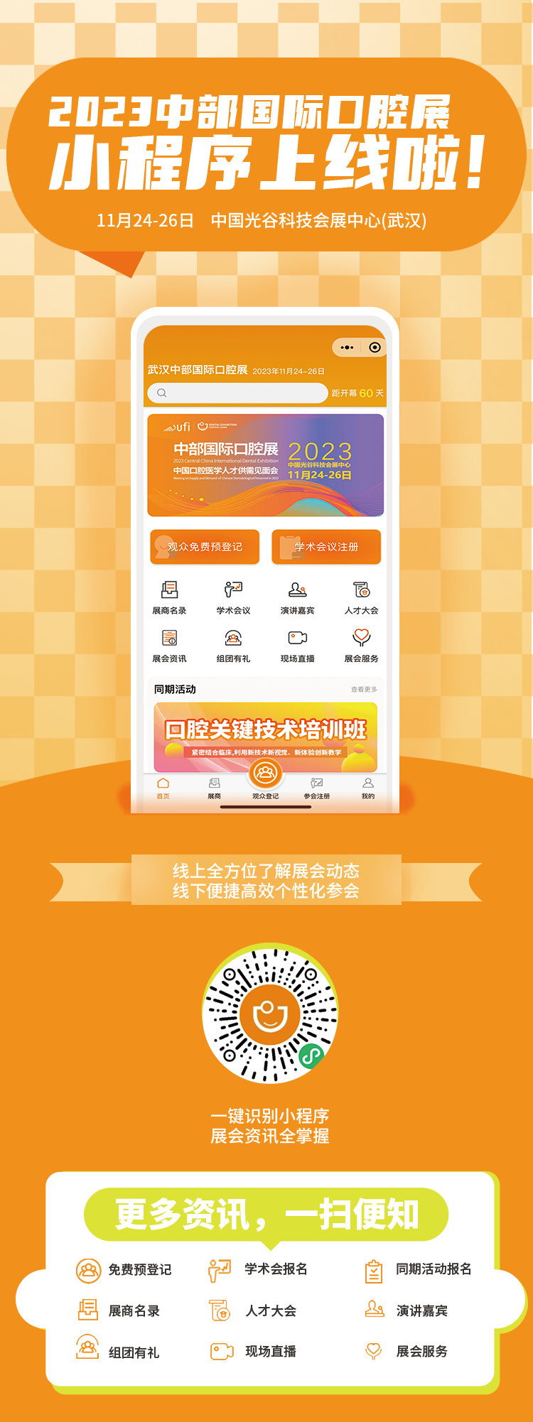 2023中部国际口腔展小程序重磅上线!线上全方位了解展会动态,线下便捷高效个性化参会。为广大参展企业、专业观众、学术会参会代表提供便捷、高效、个性化的参展体验。