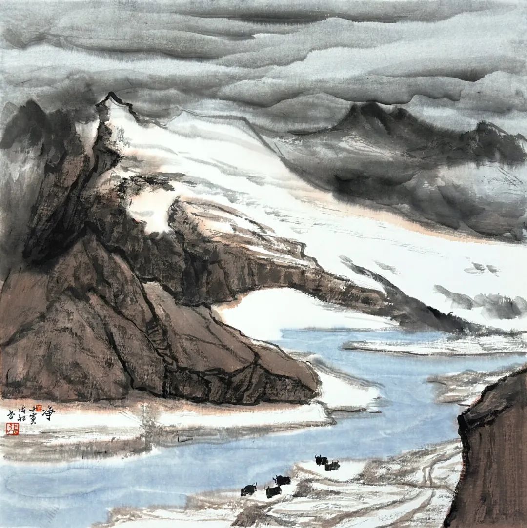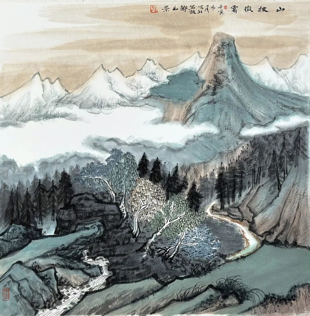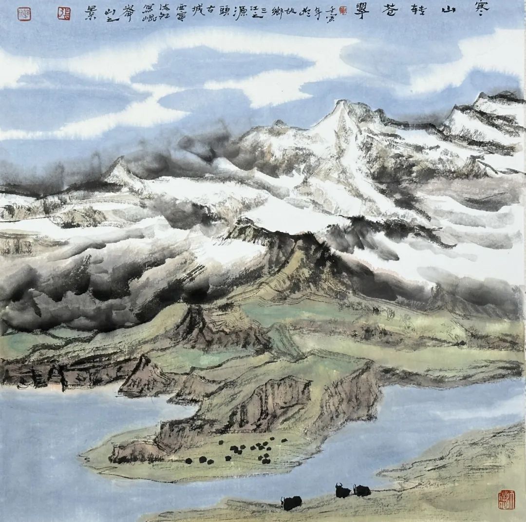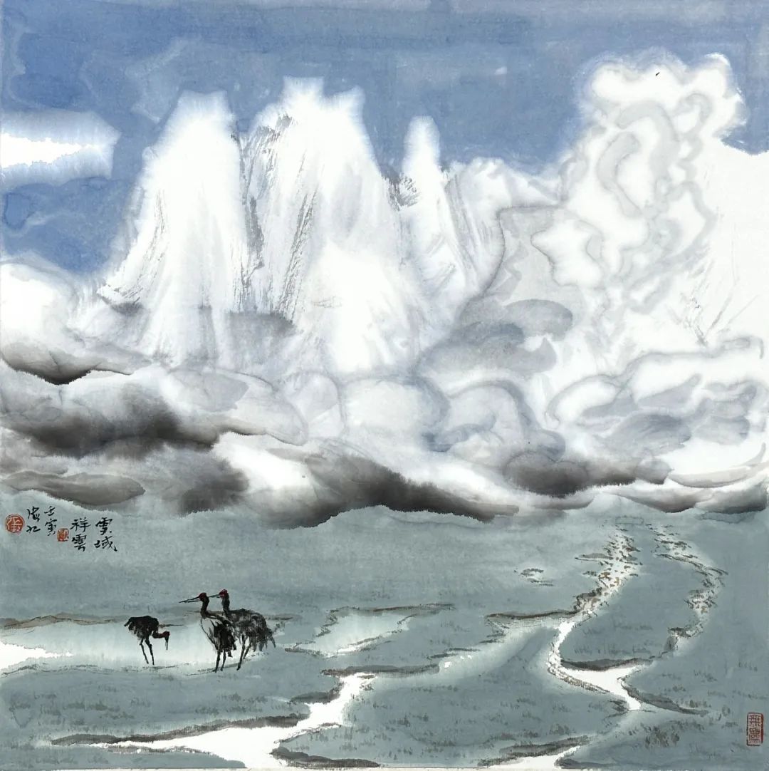 《雪域祥云》纸本设色,42×42cm,2022