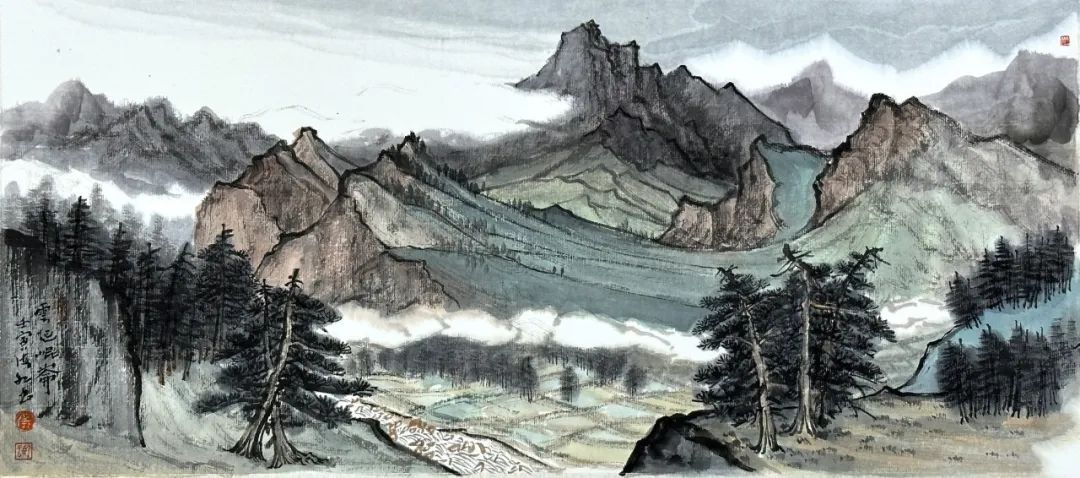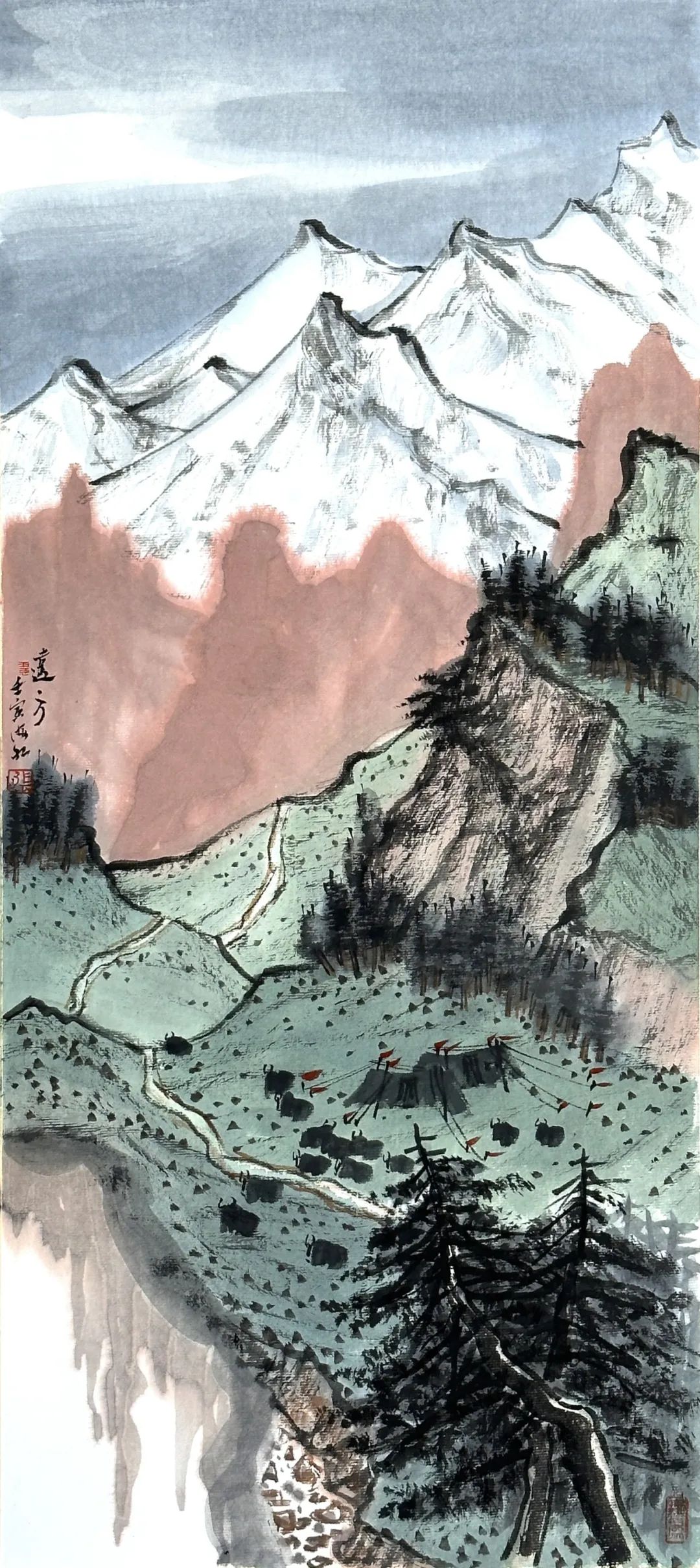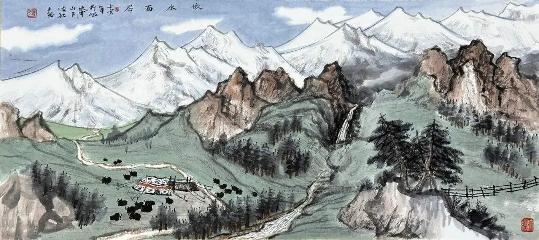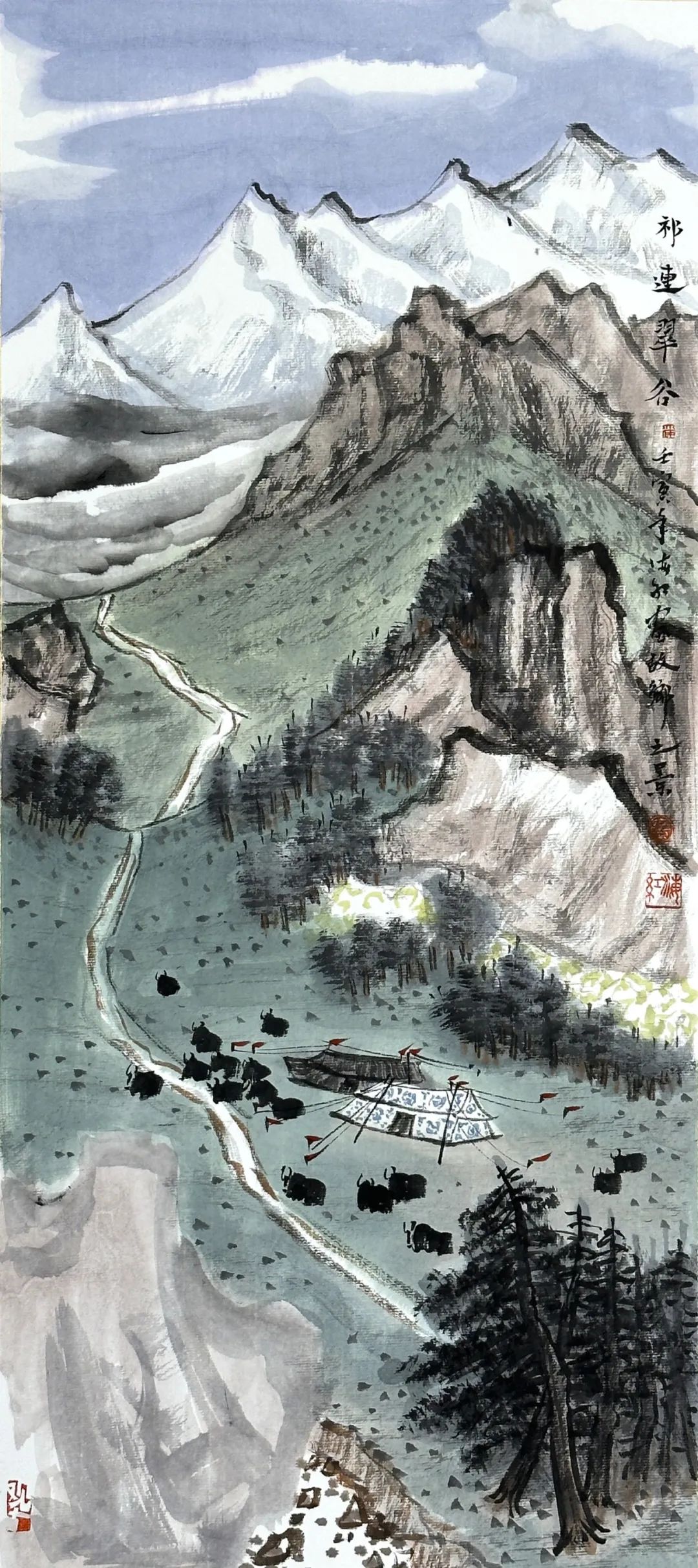 《祁连翠谷》纸本设色,60×27cm,2022