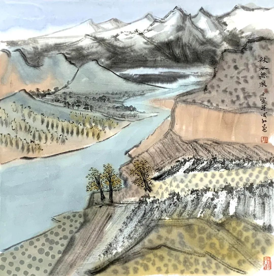 《秋水无痕》纸本设色,42×42cm,2022