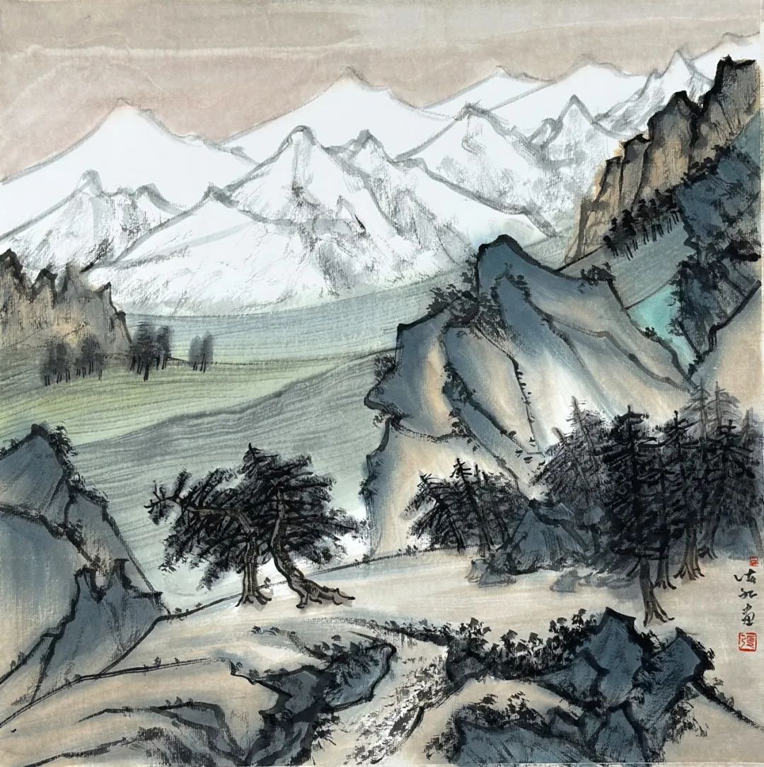 《昆仑画屏》纸本设色,42×42cm,2022