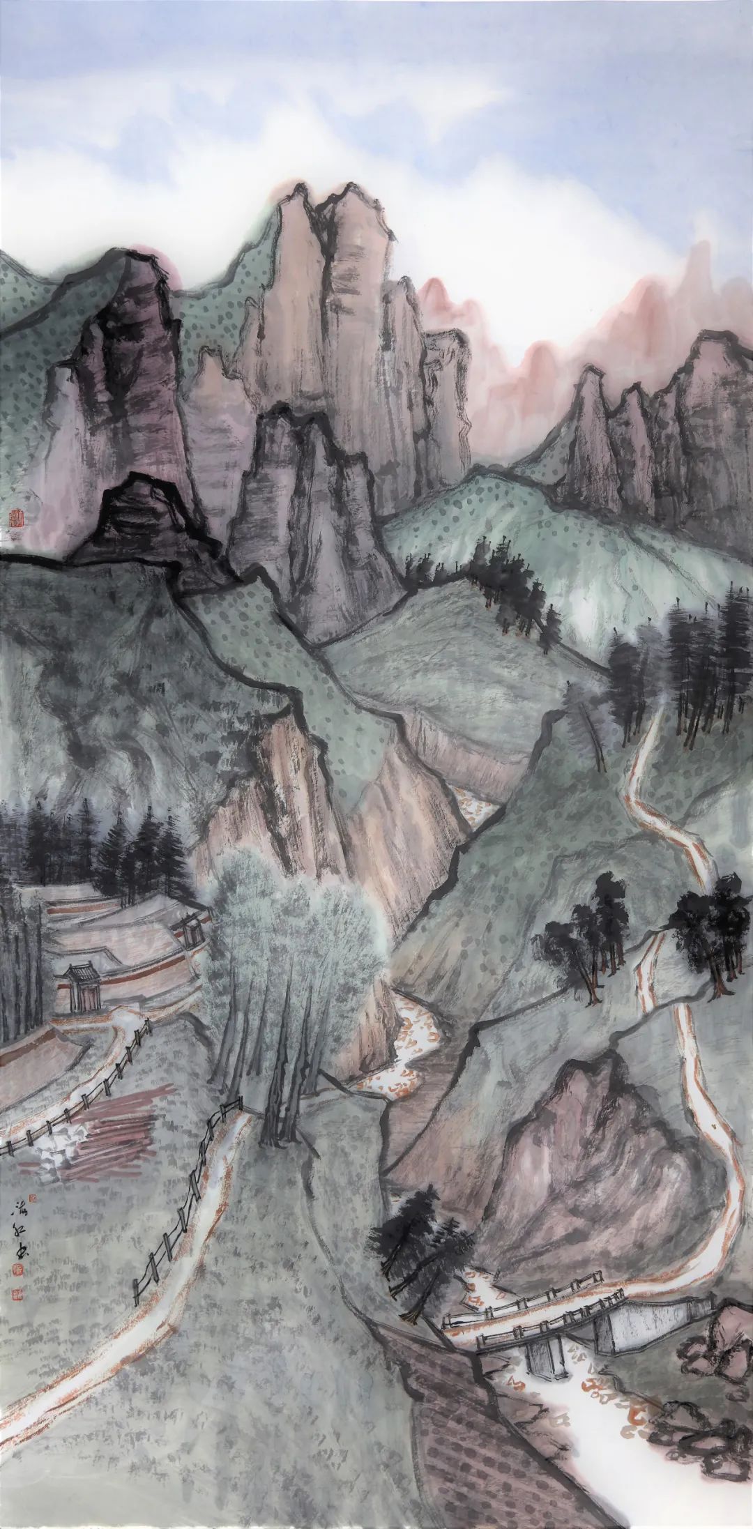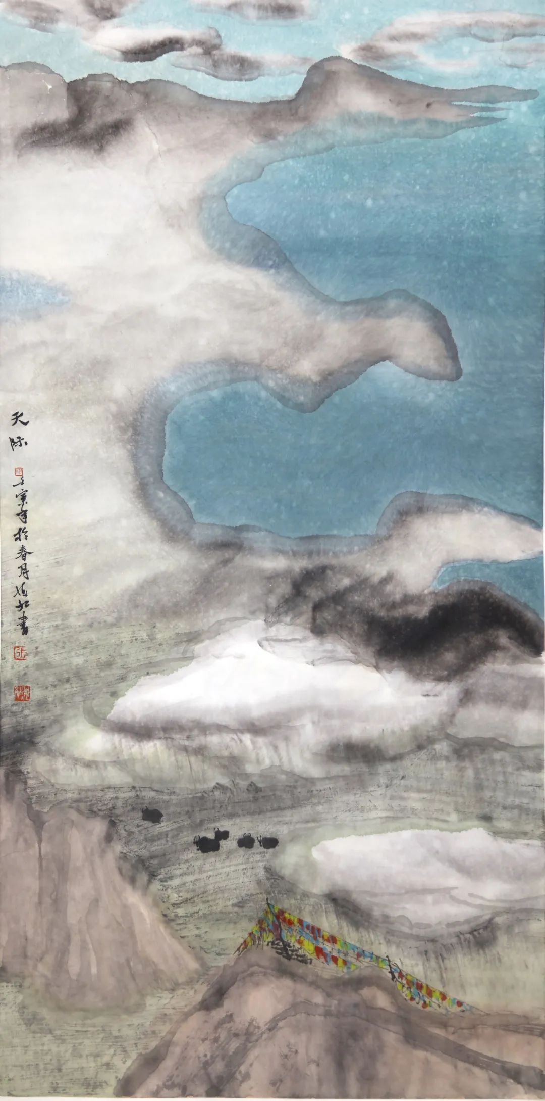 《云起昆仑》纸本设色,60×27cm,2022