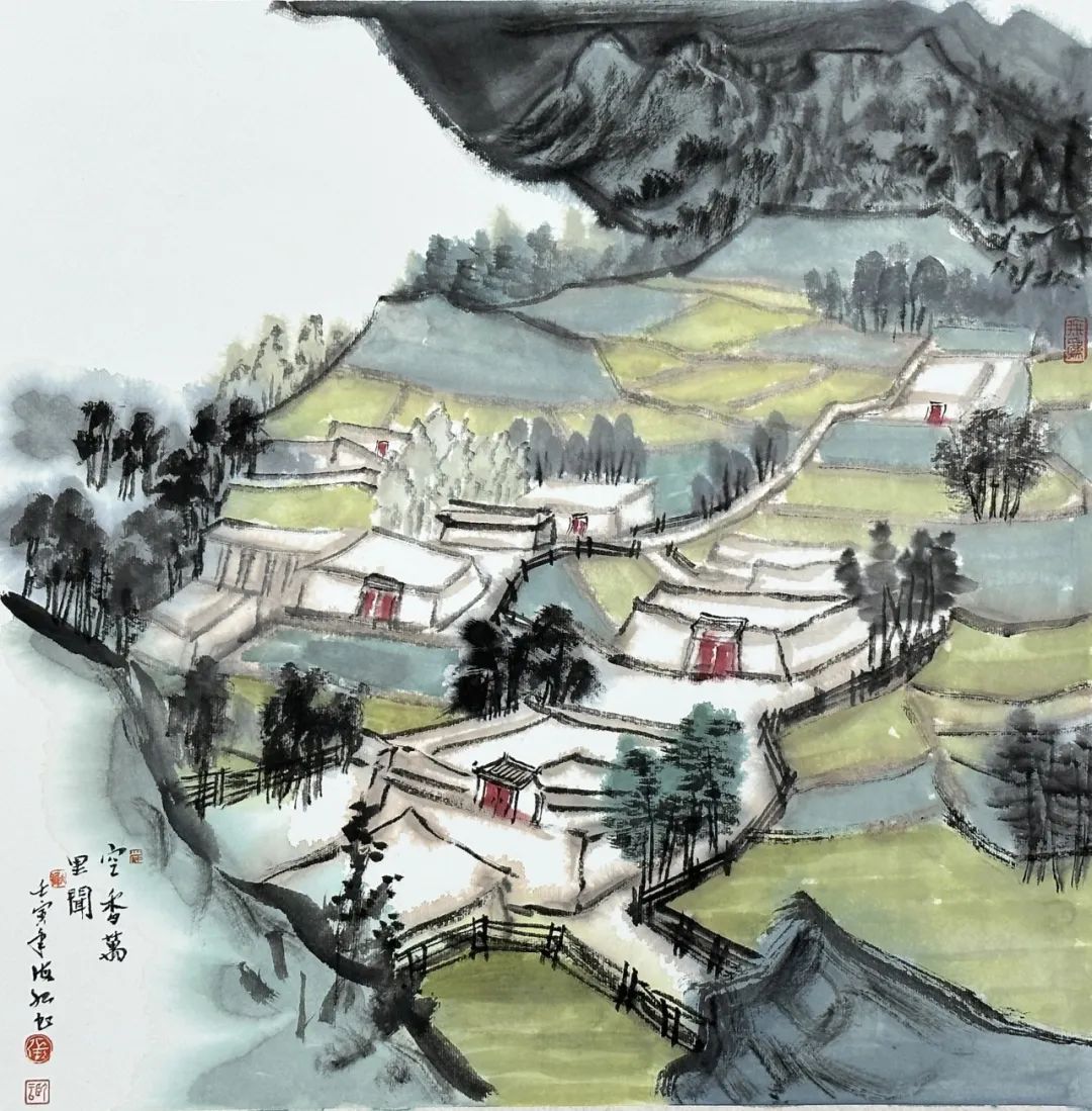 《青山望乡》纸本设色,42×42cm,2022