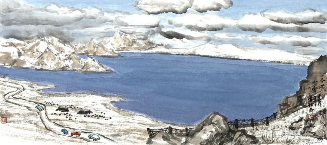 《圣湖初冬》纸本设色,60×27cm,2022