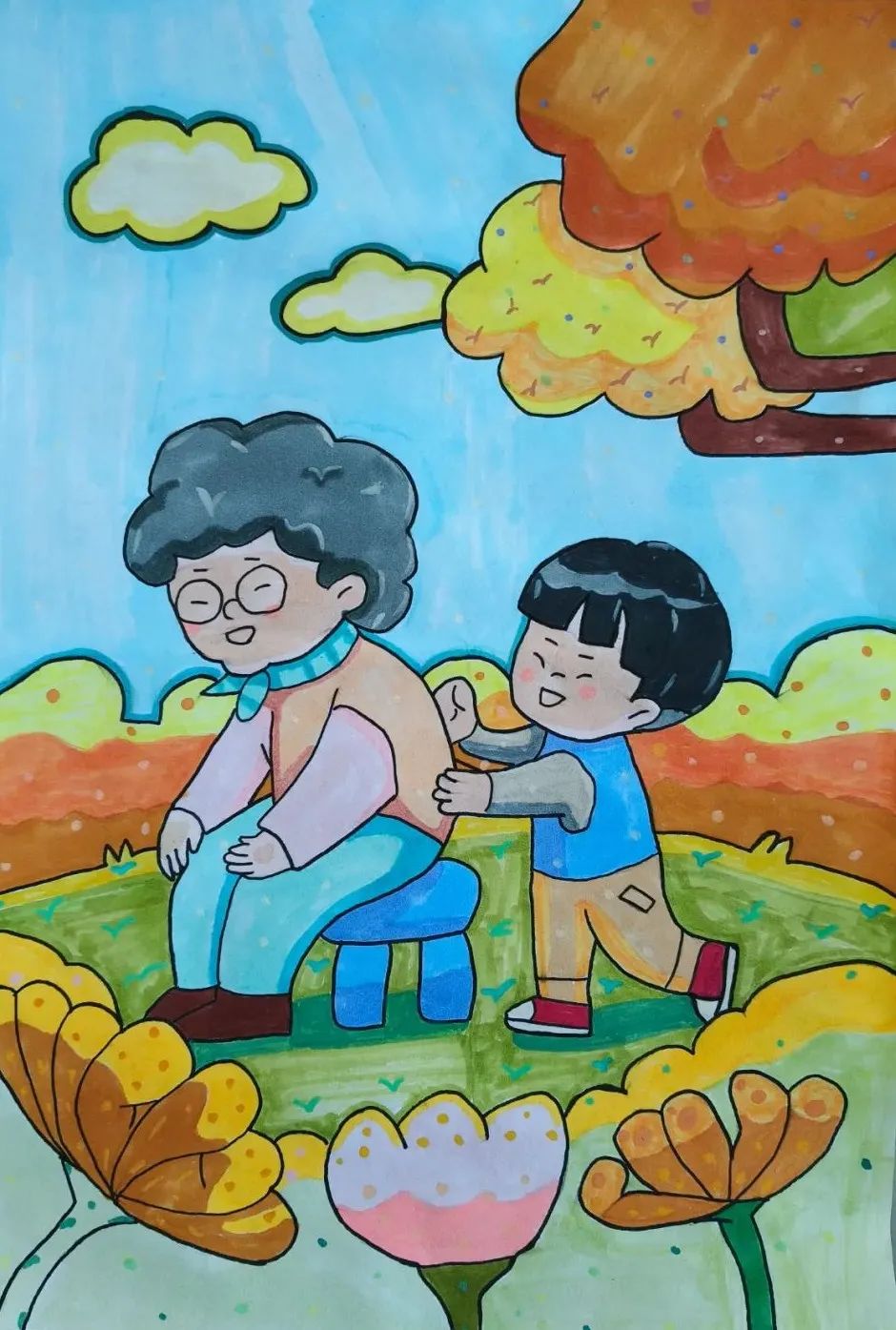 金风送爽,大地金黄。一年一度的重阳佳节又到了,在这个传统的节日里,特开展由文安县文化馆、文安县图书馆、共青团文安县委共同举办的“孝亲敬老,感恩重阳”儿童线上画展,旨在弘扬中华民族尊老、爱老、敬老的优良传统美德,培养学生们感恩意识,让同学们用绘画的方式更好的了解中华优秀传统文化,并表达对长辈们的浓情祝福。