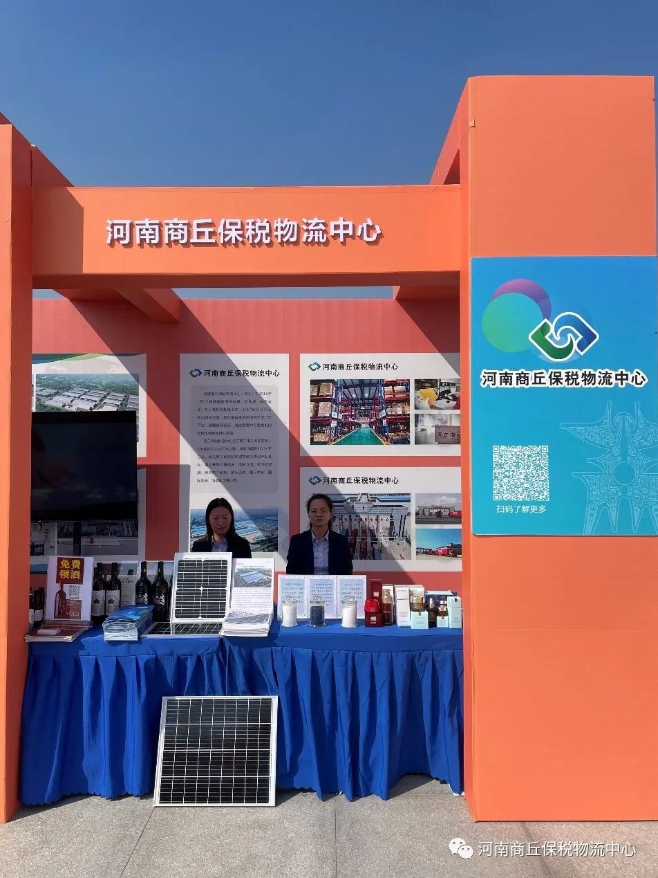 第九届中国·商丘国际华商文化节开幕式暨拜谒活动于10月23日盛大举行,商丘高质量发展现代产业展在商丘火神台华阳广场同步举办,本次展会以“坚持项目为王,致力产业倍增”为题,全面展示商丘近年来经济高质量发展的成果成效。商丘保税物流中心作为第三产业现代物流重点企业进行参展。展会上,商丘保税参展团队向参会企业及客商详细讲解了保税功能优势、业务模式等,对进出口商品:进口化妆品、太阳能光伏板、红酒、塑料颗粒进行了展览。