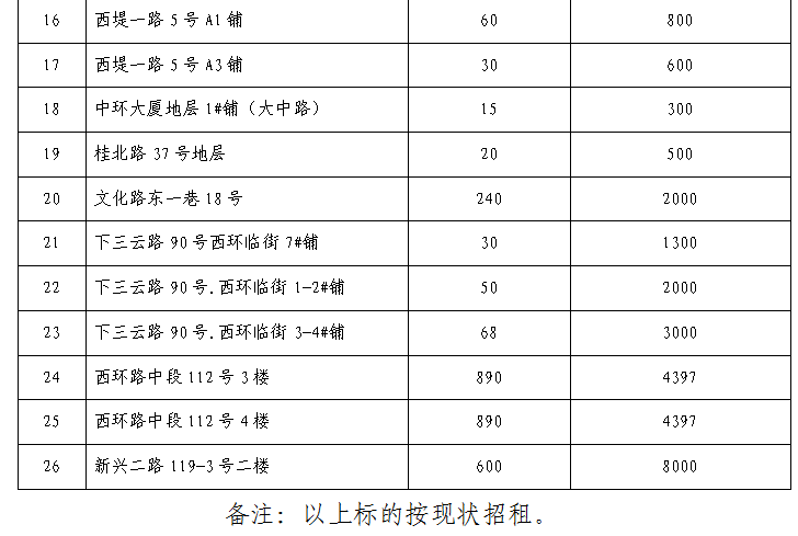 3、竞租保证金:各标的竞租保证金为月租金的两倍,应在2023年10月30日16时前汇入公司指定账户(户名:广西鑫宾江拍卖有限公司;开户行:工行南宁市开投支行;账号:2102108509300056149 ),以银行转讫为准。