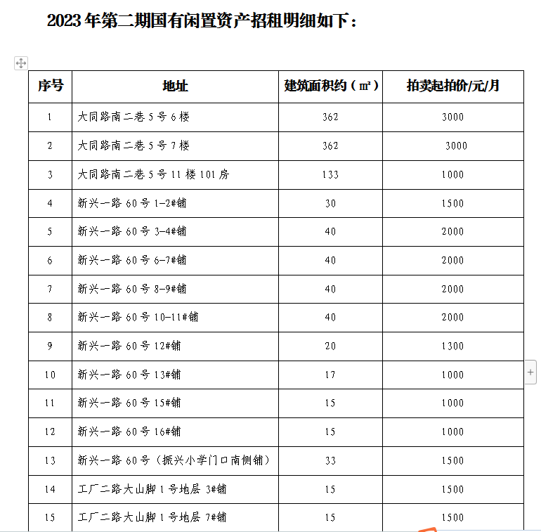 我公司已委托广西鑫宾江拍卖有限公司定于2023年10月31日上午9点30分在梧州市公共资源中心8楼会议室举办公开拍卖会,按标的现状公开招租座落在万秀区、长洲区的部分万秀区国有闲置资产,有意竞租者请与广西鑫宾江拍卖有限公司联系,详细资料备索。