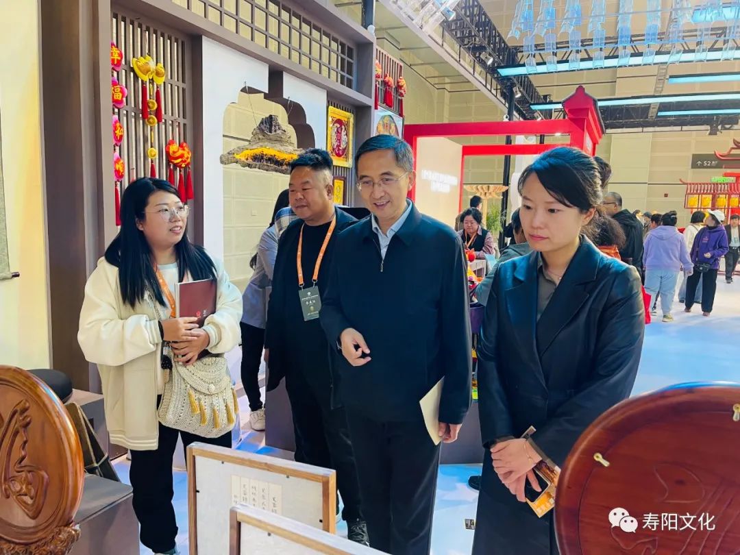 10月19日至23日,第六届山西文化产业博览交易会在山西潇河国际会展中心举办。我县众多特色非遗文创产品和精彩的非遗展演亮相文博会,吸引众多观展者驻足观看,现场展示了寿阳非遗文化的魅力。县委常委、宣传部部长高庆林,副县长付萧参加巡展。