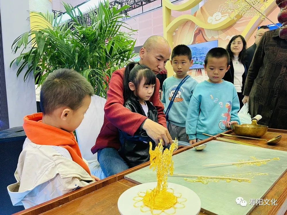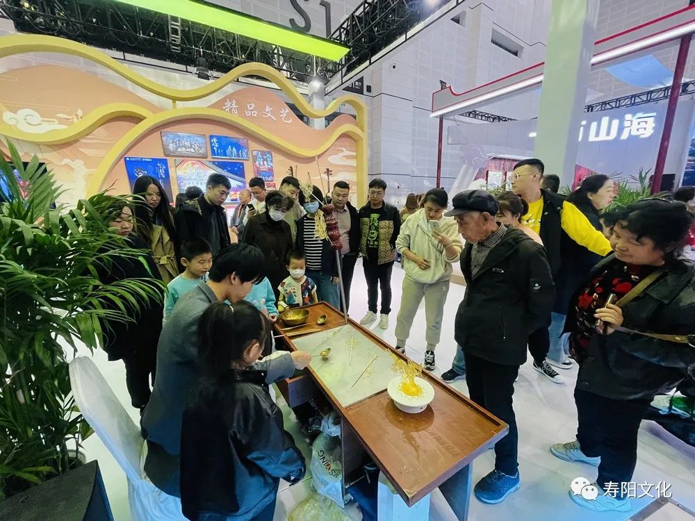 独具魅力的剪纸、形象生动的传统布艺、惟妙惟肖的糖画、充满创意的钩针编织……各类精美的非遗展品琳琅满目、各具寿阳特色的非遗文创产品受到观众亲睐,非遗传承人还以现场展示和制作的方式,为现场嘉宾和观众近距离呈现精湛技艺,引得广大游客朋友竞相体验,受到游客的一致好评,充分展示了我县深厚的文化底蕴。在非遗展演展示现场,来自我县的国家级非遗傩舞“爱社”、省级非遗高跷竹马戏、县级非遗河蚌舞等惊艳亮相文博会,并进行精彩展示。马蹄铿锵、铃铛作响,马鞭飞旋、你来我往,精湛的表演把剧中人物表现得栩栩如生、淋漓尽致,现场观众喝彩声不断。台上歌舞欢腾,台下的人驻足停留,精心挑选着喜爱的产品。在展销现场,韩愈茶食、油柿子、布艺、糖画、福寿剪纸、编织、篆刻等非遗产品都很受欢迎。