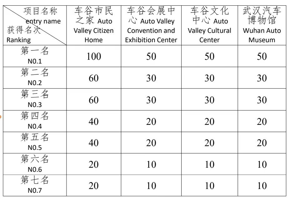 The selected candidates for the Auto Valley Citizen Home, Auto Valley Convention and Exhibition Center,Auto Valley Cultural Center projects,and Wuhan Auto Museum will deepen the design of their subsequent plans to the depth required by the solicitors, and serve as a condition for obtaining design bonuses. The cost of deepening the design of the plan will be discussed separately within the current national fee standards in conjunction with the quotation.