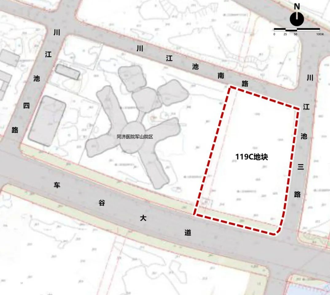 (三)车谷文化中心:选址位于武汉经济技术开发区军山新城119C地块,用地面积约4.3公顷,东临川江池三路,南临车谷大道,北临川江池南路,西邻同济医院军山院区。总投资约8亿元。