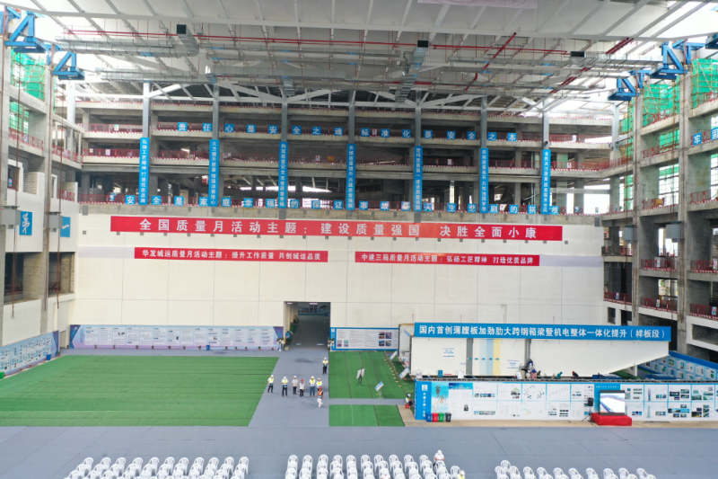 项目创新运用一体化提升施工技术,对展厅超大跨度钢箱梁、机电管线、金属屋面进行一体化整体提升,有效解决了各专业高空安装时存在的安全风险高、施工难度大、质量无保障等问题。该技术总体达到国内领先水平,局部达到国际先进水平。