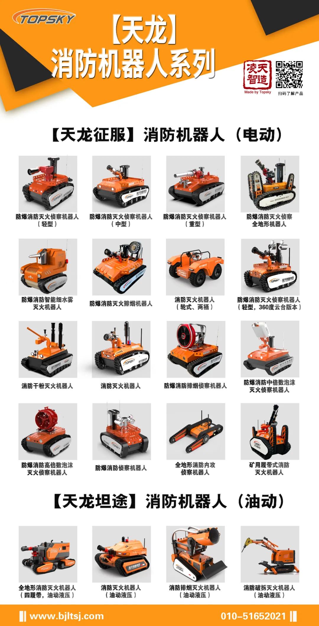 消防排烟灭火机器人作为特种机器人的一种,采用柴油发动机作为动力源,使用无线遥控的方式远距离操控消防灭火机器人。可使用于各种大型石油化工企业,隧道、地铁等不断增多的油品燃气、毒气泄漏爆炸、隧道、地铁坍塌等灾害隐患多发地,灭火机器人在抢险救援中发挥举足轻重的作用,主要替代消防员在危化火场或浓烟火灾现场救援的专用设备。本产品具备灭火、排烟、清障、音视频侦察功能。