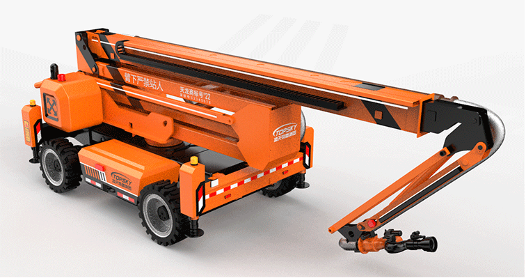 RXR-M80L-JG20是一款举高喷射消防灭火机器人,采用大容量高安全性的铅酸蓄电池为动力,大功率四驱实心橡胶轮胎进行行走,臂架动作由高效液压系统提供动力,搭载了每秒80升的电控水/泡沫两用消防炮,携带多种检测、监控传感检测装置,对火灾场所实施远程实时监控,进行火灾扑灭,特别是高空建筑物及设施的火灾扑救。