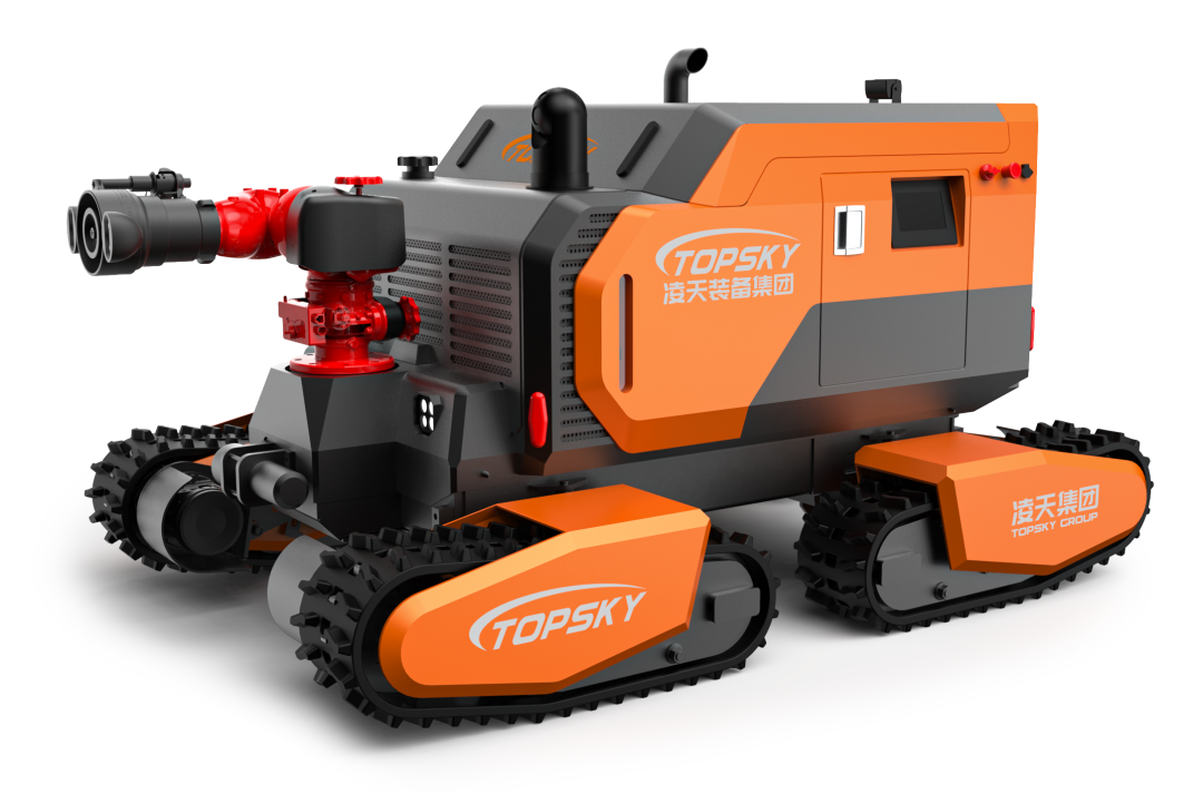 全地形消防灭火机器人采用柴油发动机为动力源,使用液压传动系统驱动液压马达行走,应用于扑救地形复杂、人员和常规消防灭火机器人无法靠近的火灾现场,也可用于地铁车站与隧道火灾、大跨度、大空间场所火灾、石化油库与炼制厂火灾、地下设施与货场火灾以及危险火灾目标的进攻与掩护。本产品具备远程操控、全景显示等功能,同时具备超高的越野性能;集成式液压刹车装置,可有效驻车刹车,防止整机溜车。