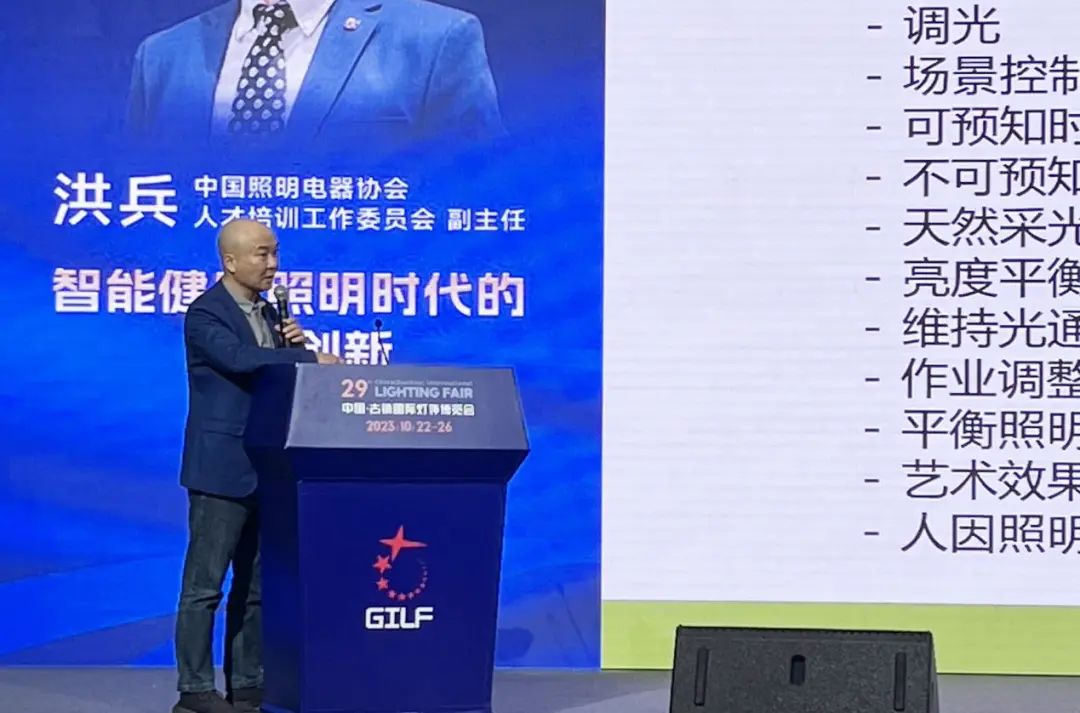 中国照明电器协会人才培训工作委员会副主任洪兵以《智能健康照明时代的培训创新》为题,提出由于智能健康照明在照明行业中的地位越来越显著,学习相关技能也是百利而无一害。