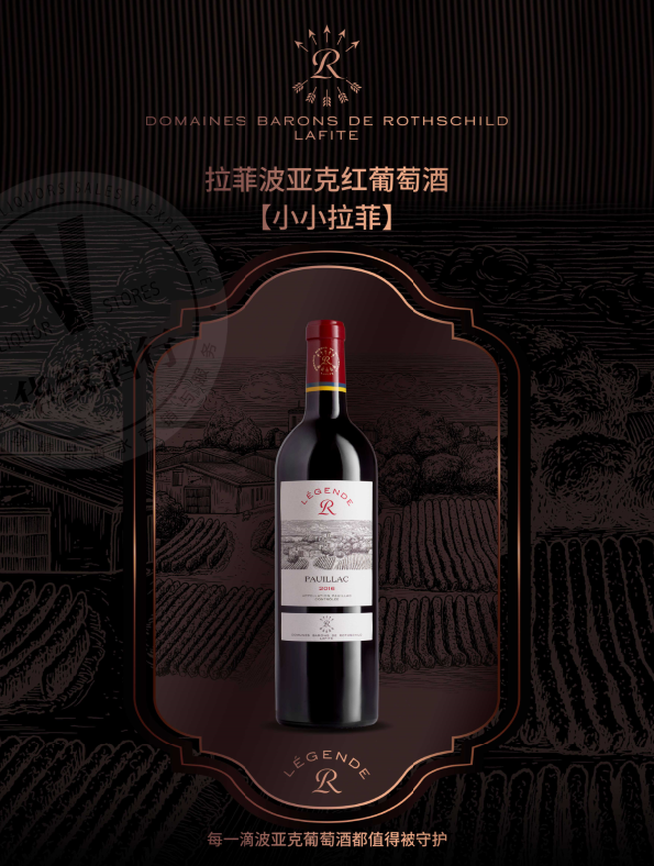 作为对酒庄声名赫赫的鼎级名酒的补充,拉菲波亚克红葡萄酒由拉菲罗斯柴尔德团队精心打造,所费的心里与激情不亚于集团旗下的名庄们,而波亚克葡萄酒中40%来自拉菲自己的葡萄园,所以又被一部分消费者亲切的称为“小小拉菲”。